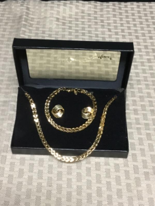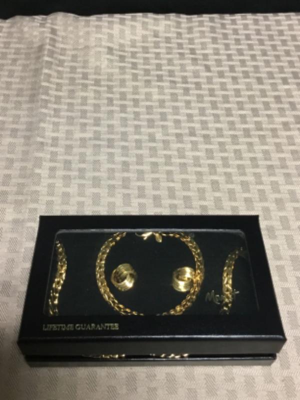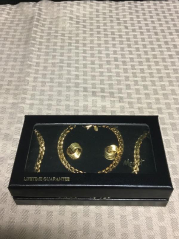 Monet gold necklace, bracelet, and earring set