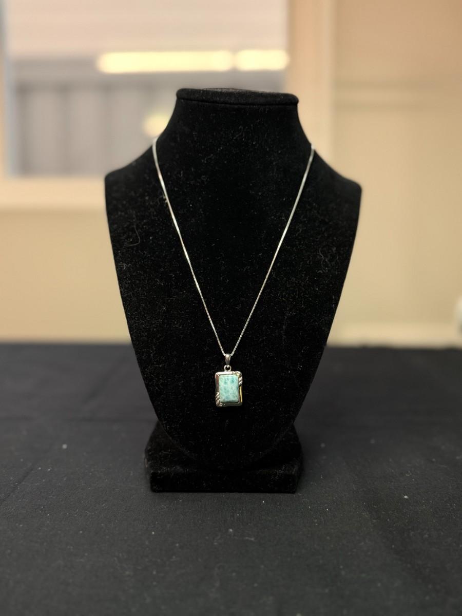 Necklace Southwestern Turquoise Pendant Sterling Silver Box Chain