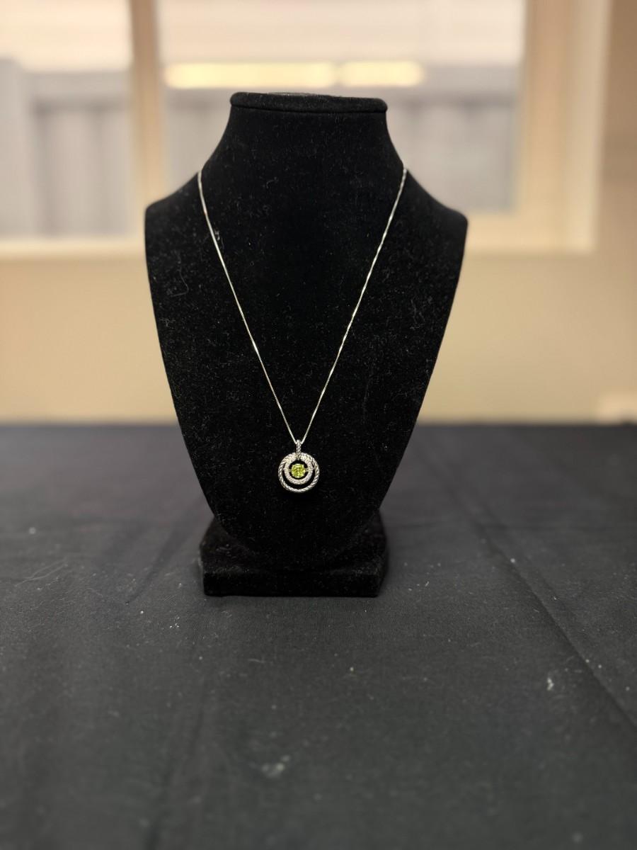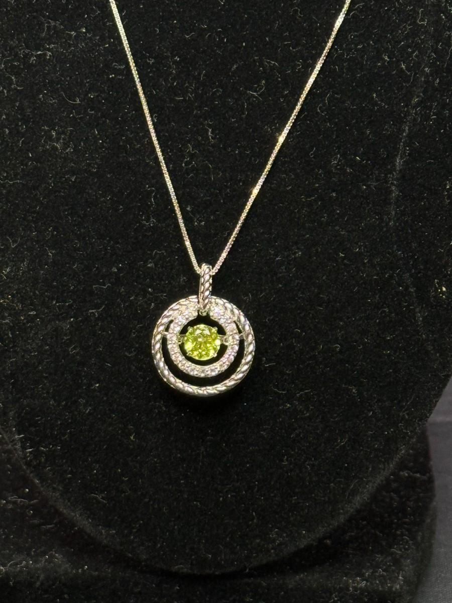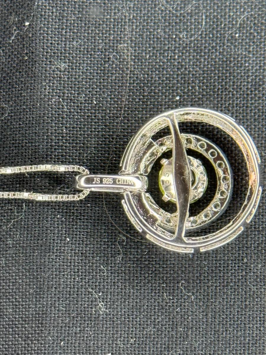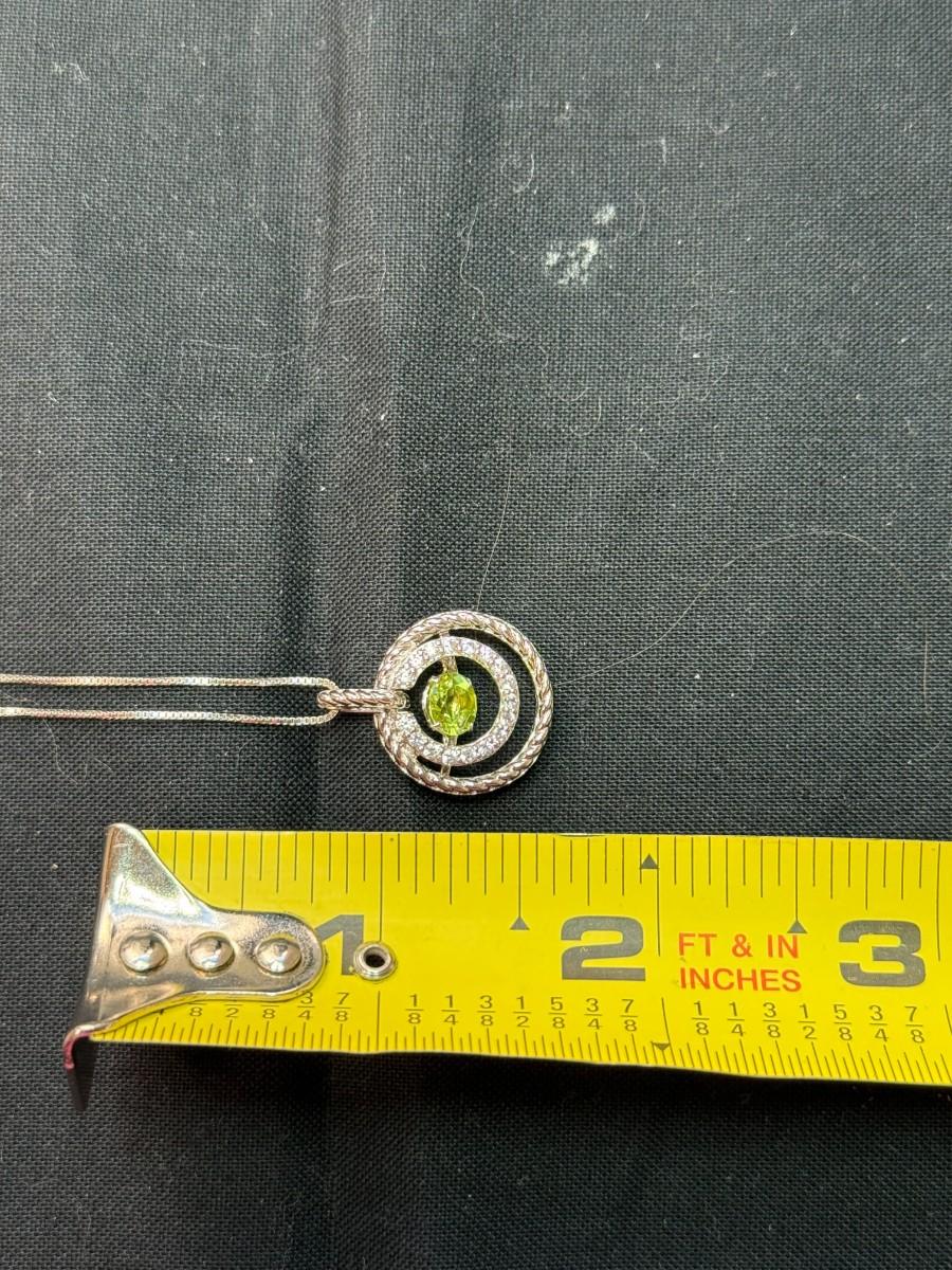Necklace Sterling Silver 925 Circle In Circle Design With Green And Clear stones