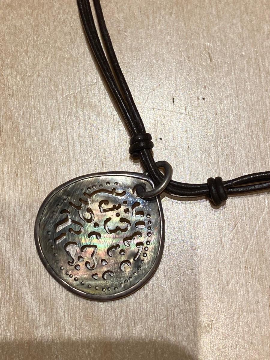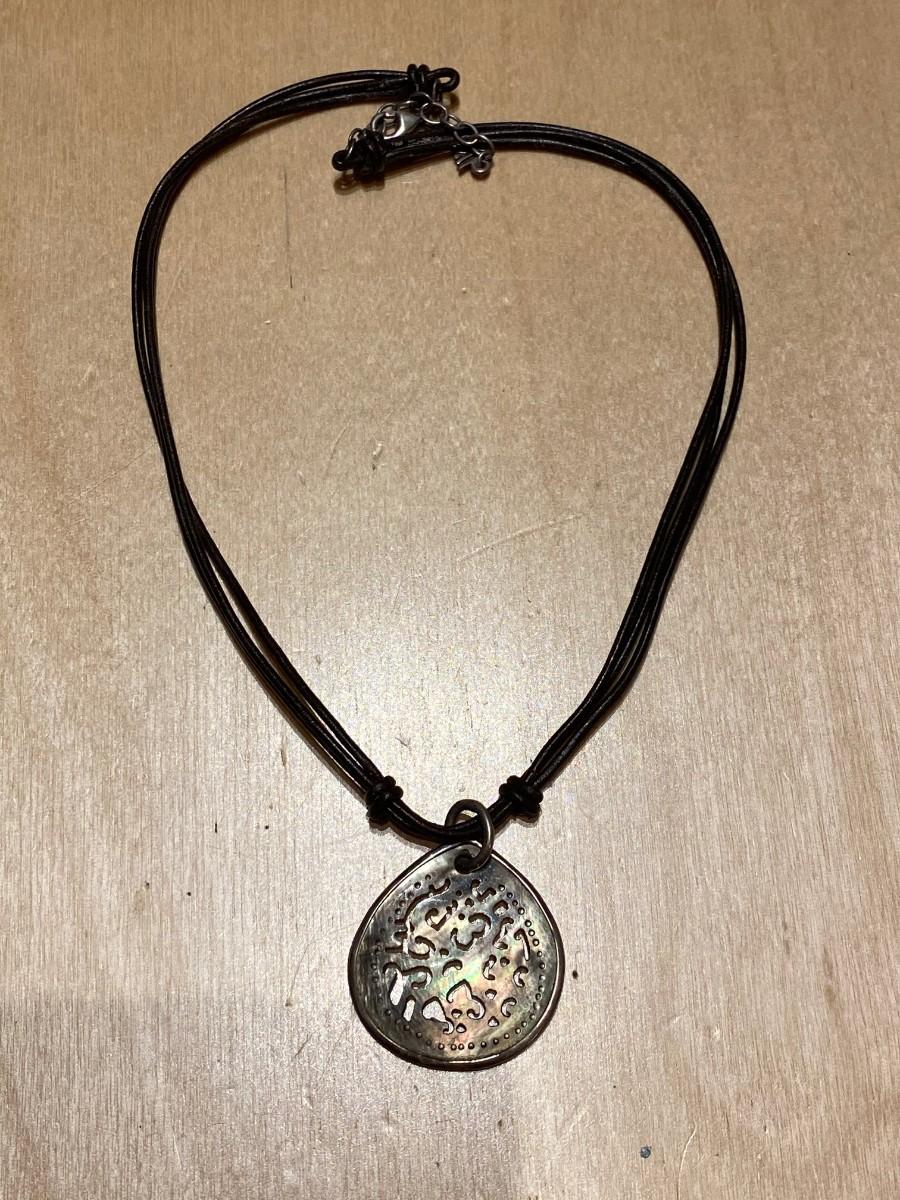 Necklace with leather and abalone shell pendant