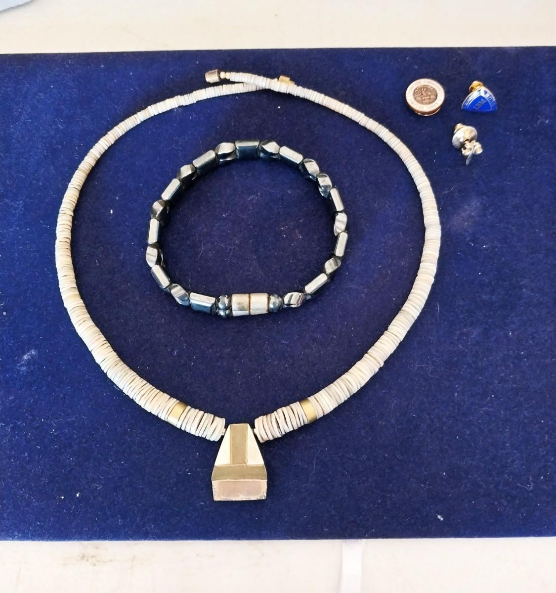 NECKLACE WITH STONE PENDENT-MAGNETIC BEAS BRACELET AND FERTILTY PINS