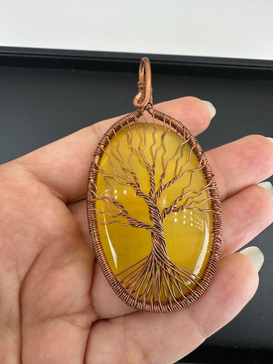 1. Necklace Yellow Cat Eye 925 Sterling Silver Plated Handmade Gemstone