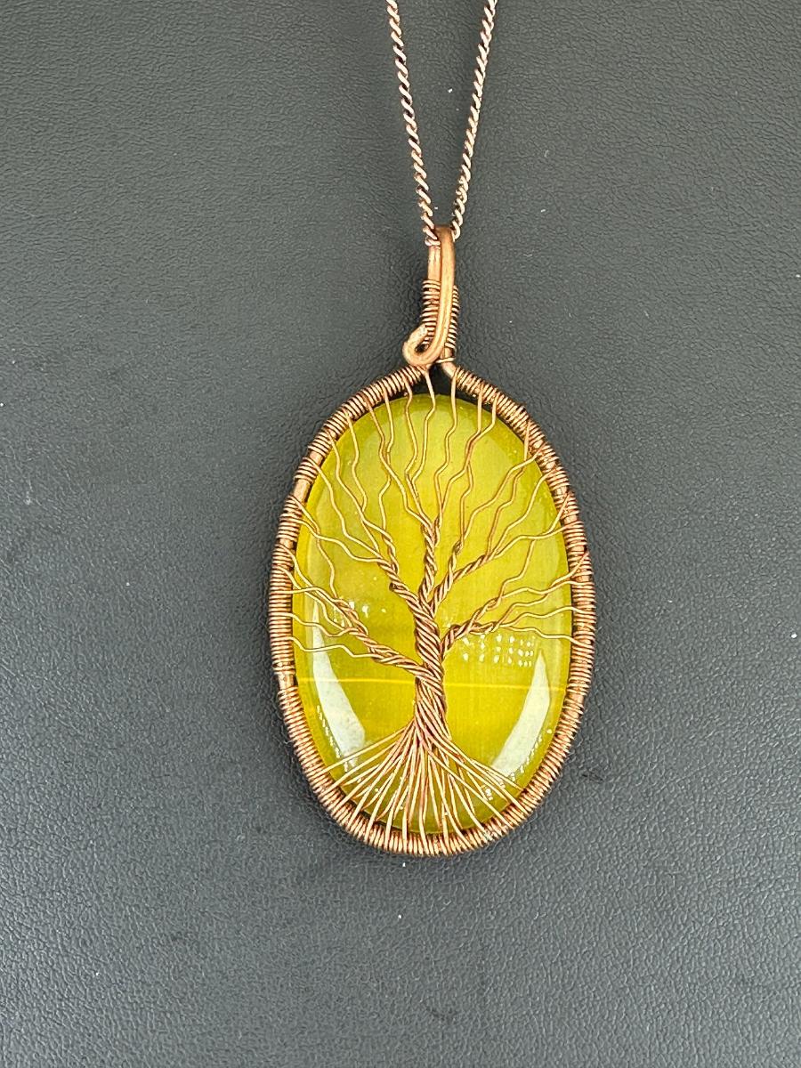 Necklace Yellow Cat Eye 925 Sterling Silver Plated Handmade Gemstone