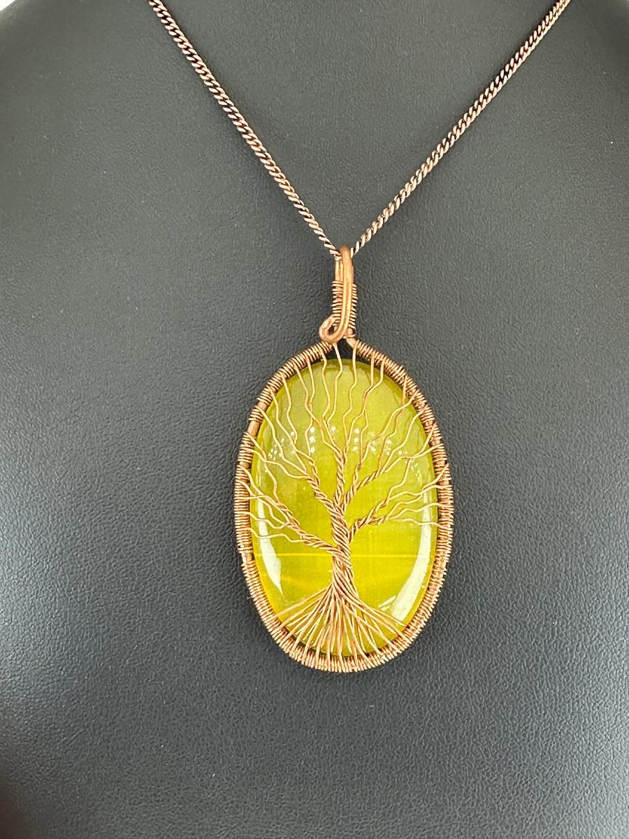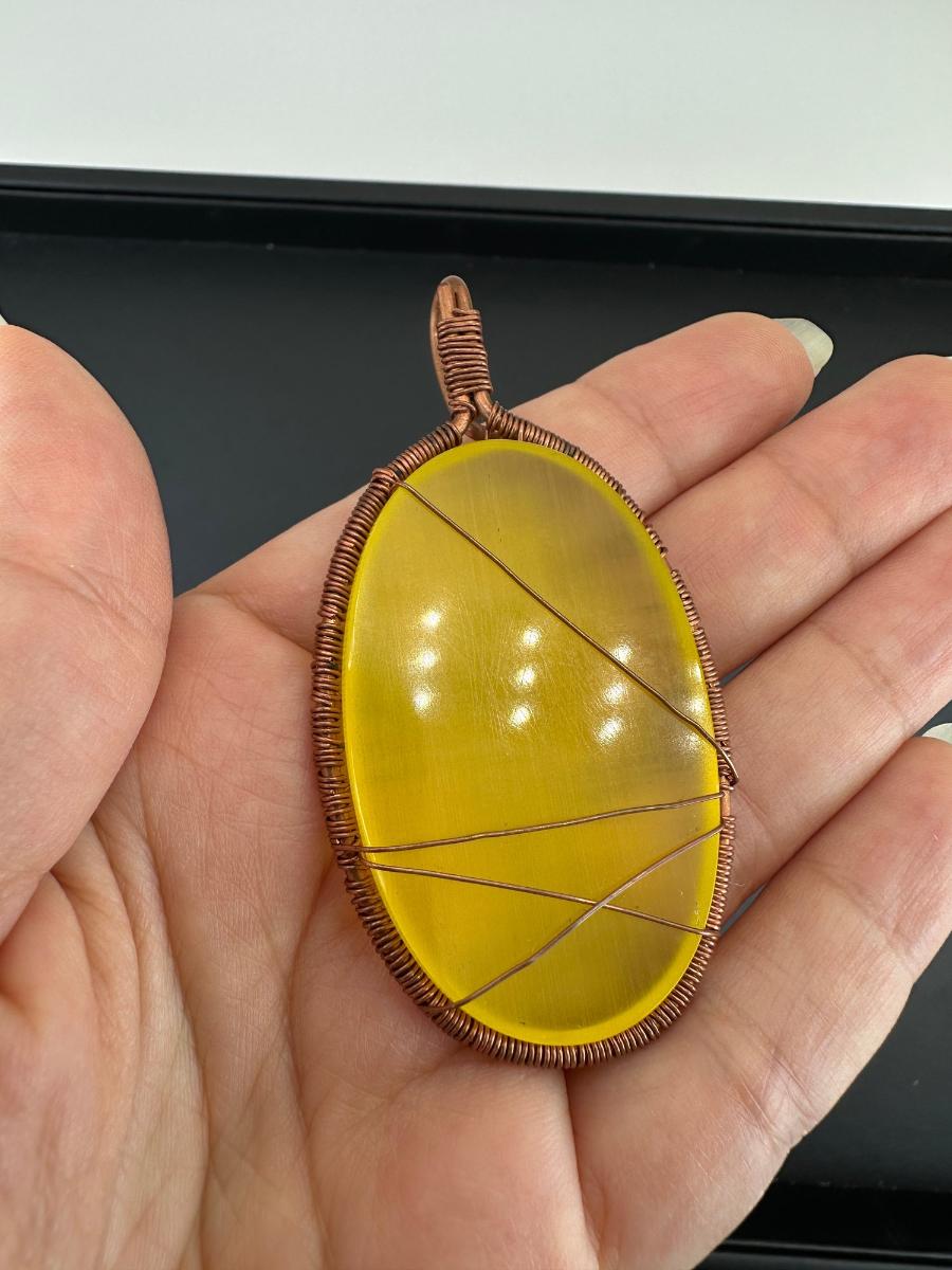 Necklace Yellow Cat Eye 925 Sterling Silver Plated Handmade Gemstone