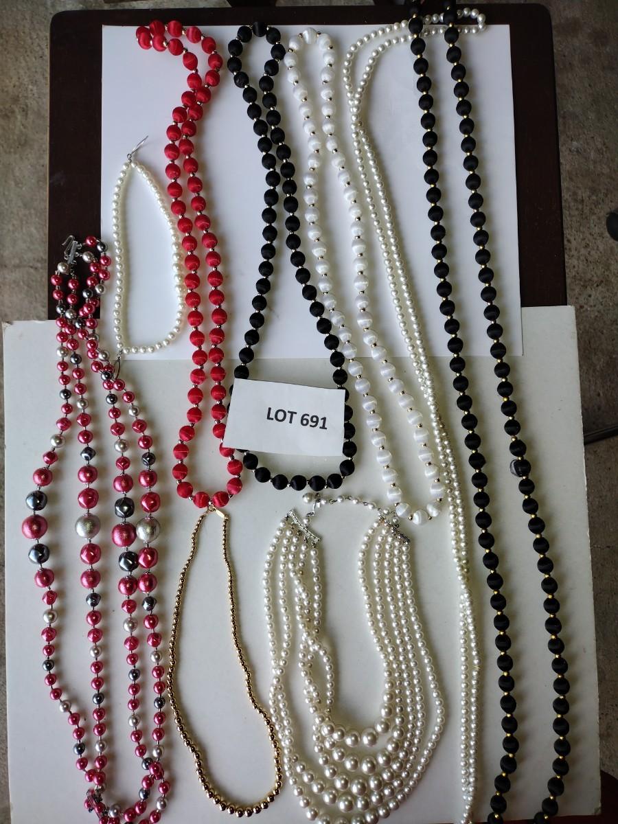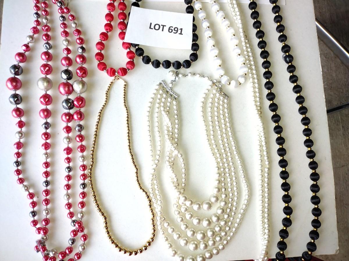 Faux Pearl necklaces. Silk beaded necklaces pink and gray beaded necklace. 9 total