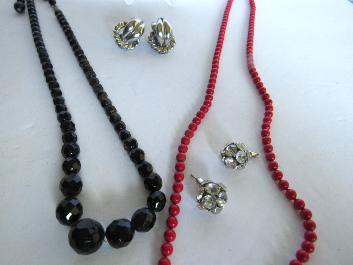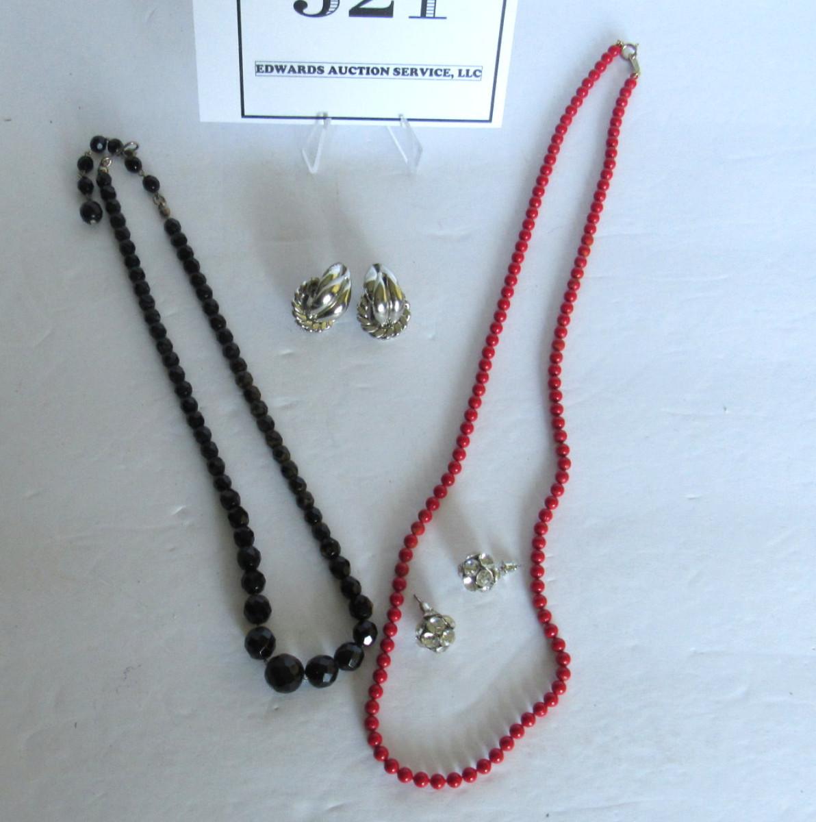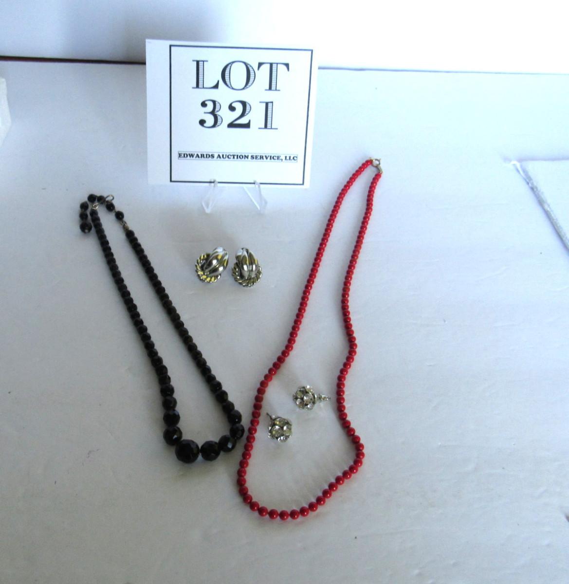 Lot 322:  Necklaces and Earrings, Black Glass and Red Glass or Stone