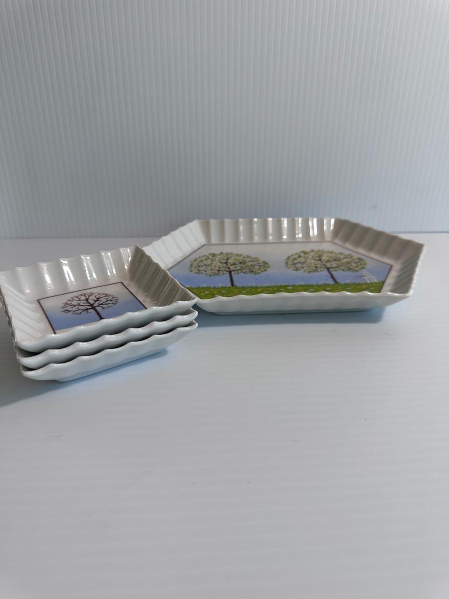 Set of4 Mid Century Royal Dux Porcelain Dishes representing different seasons. All have the ability to be hung on the wall for display.