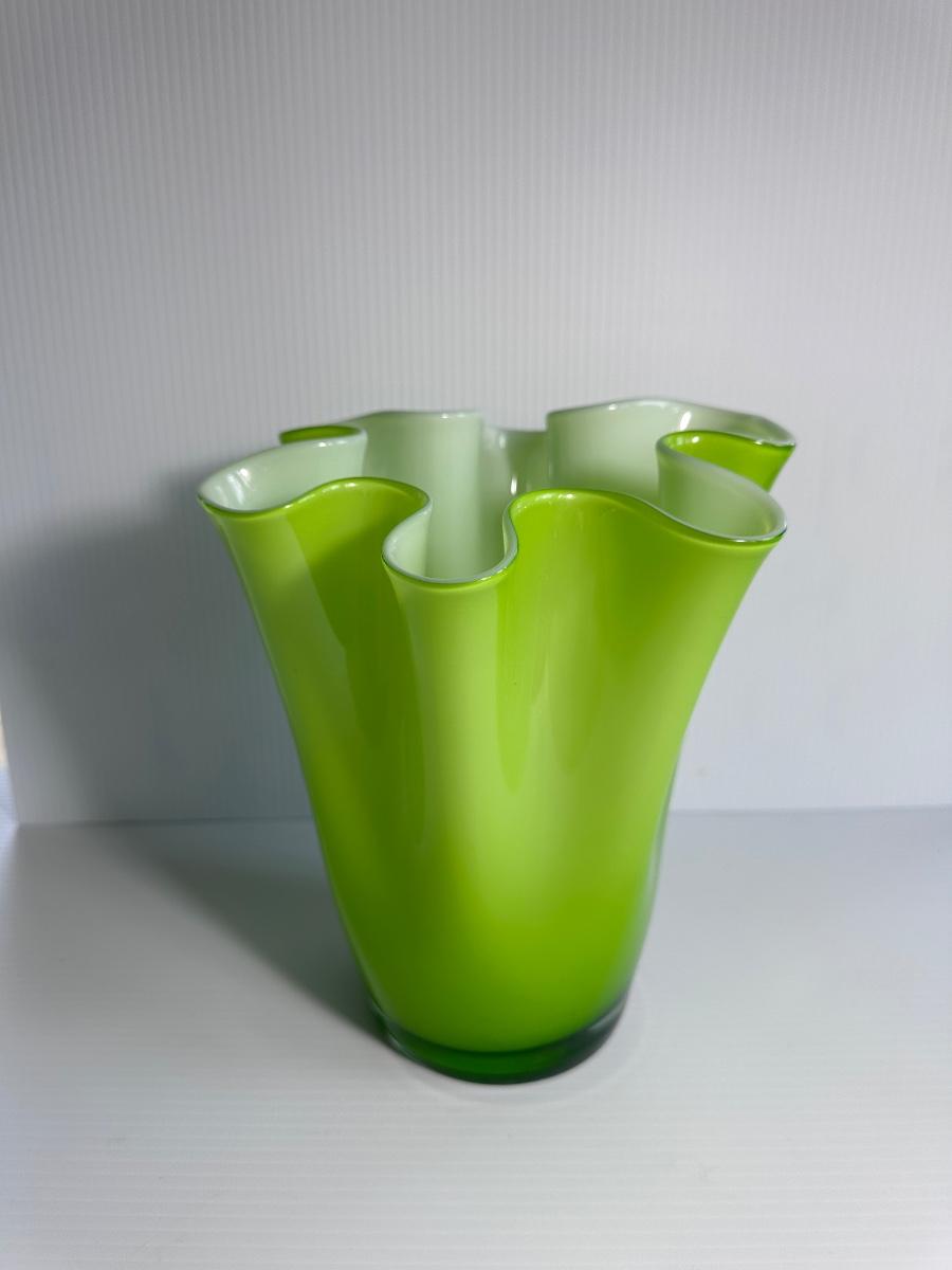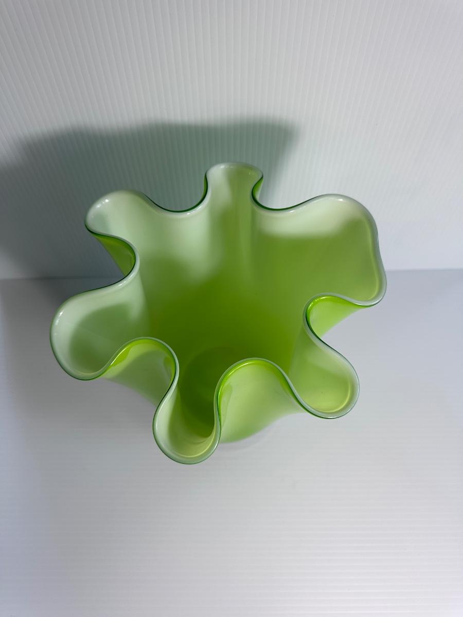 Green cased art glass vase with wavy rim