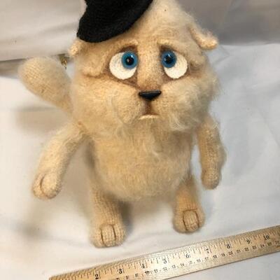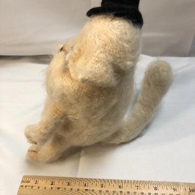 Adorable sad eyes cat in black top hat. Needle felted plush, under 10" size. Good condition. No tags