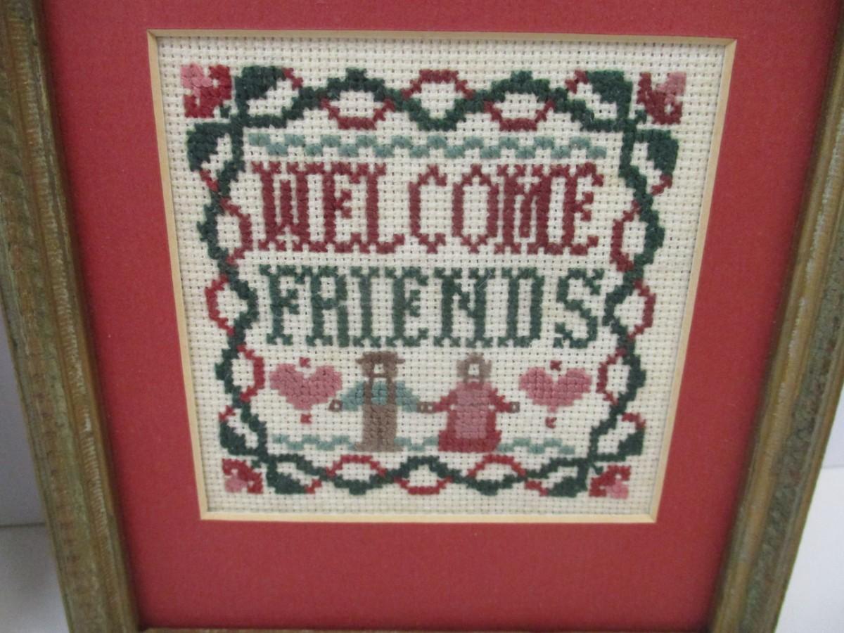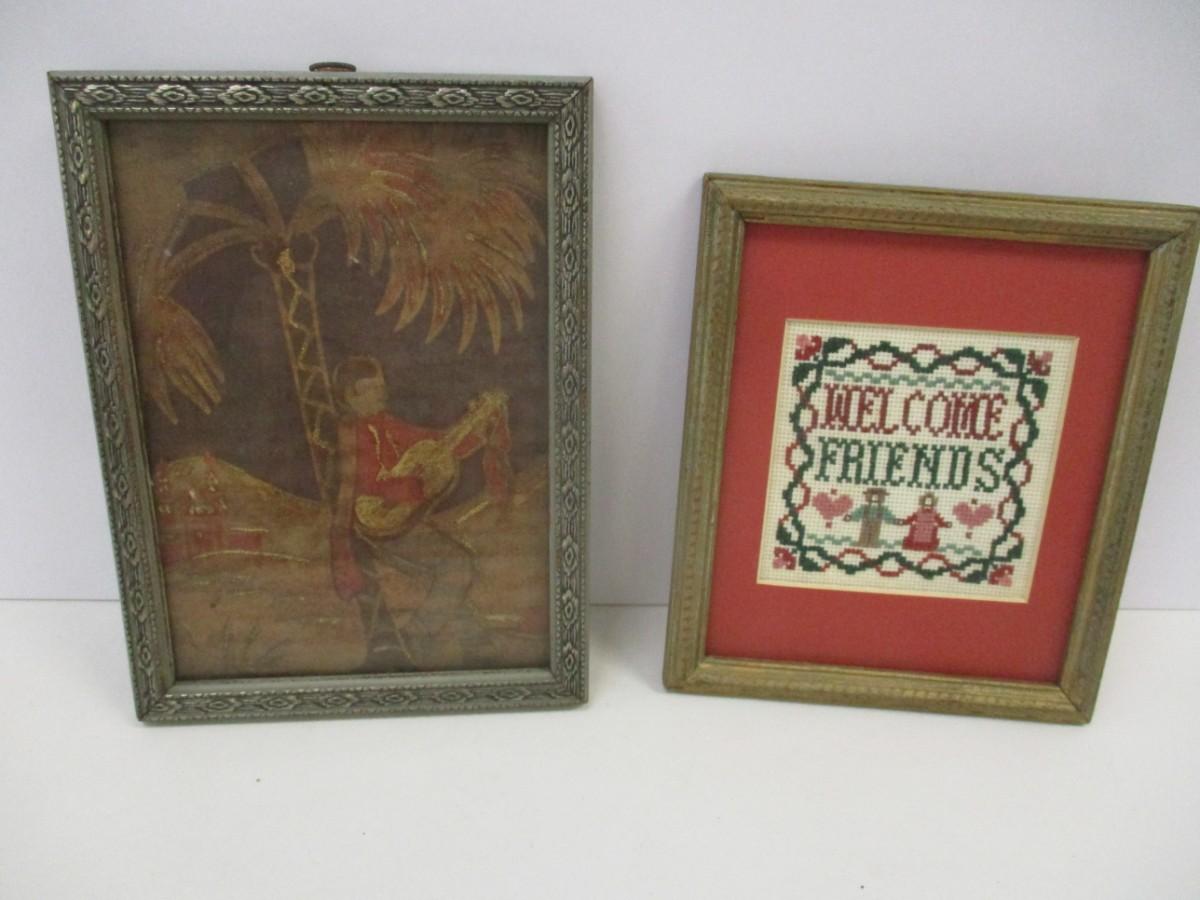 Needle Point "Welcome Friends" Mexican Gentleman Playing The Guitar Wall Decor