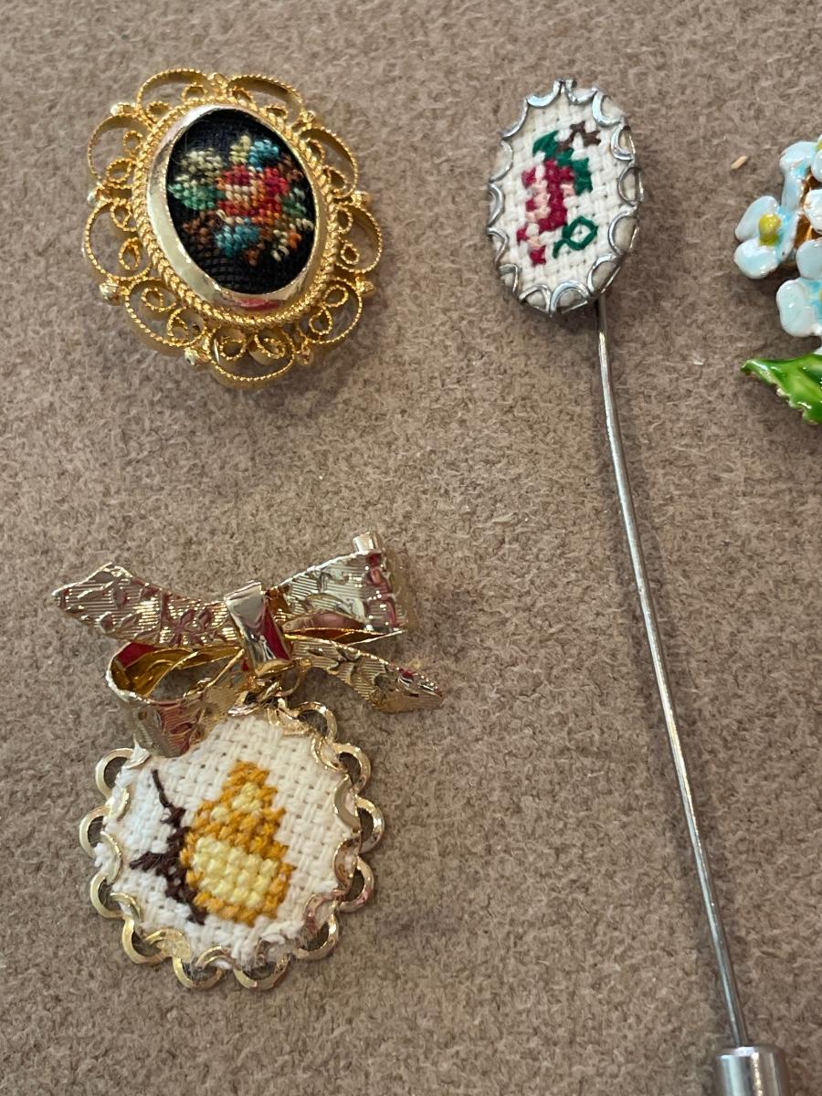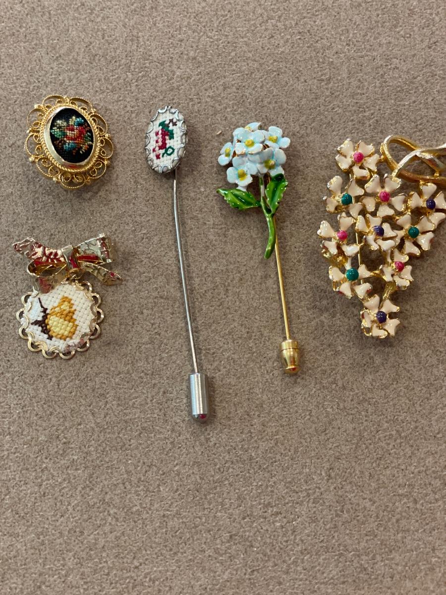 Needle work and floral pins