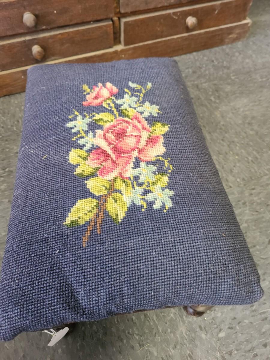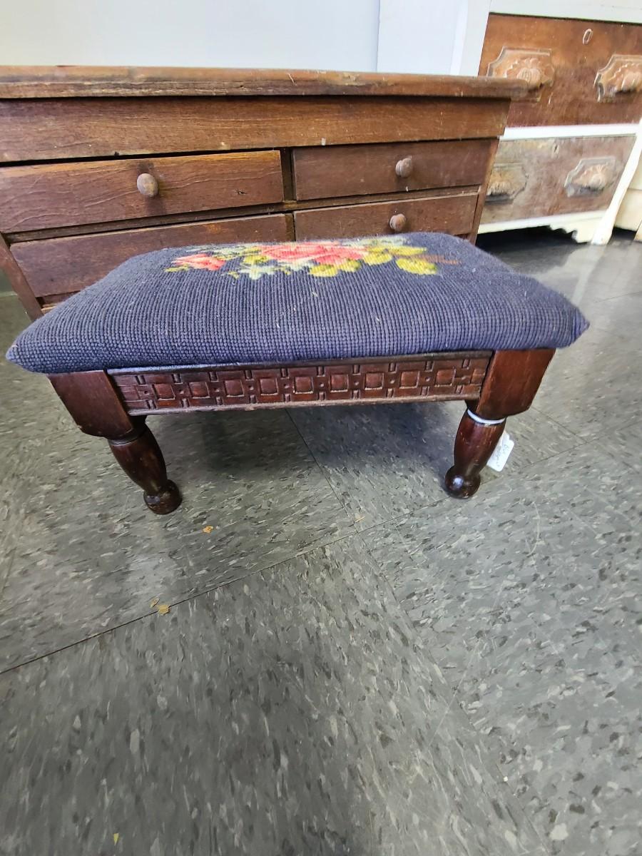 Needlepoint Flowers Footstool - 15 x 9 1/2 inches and 8 tall