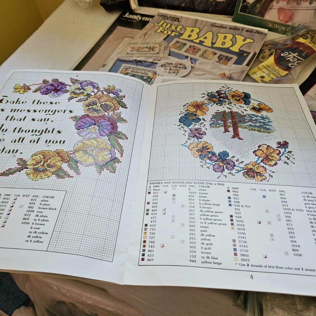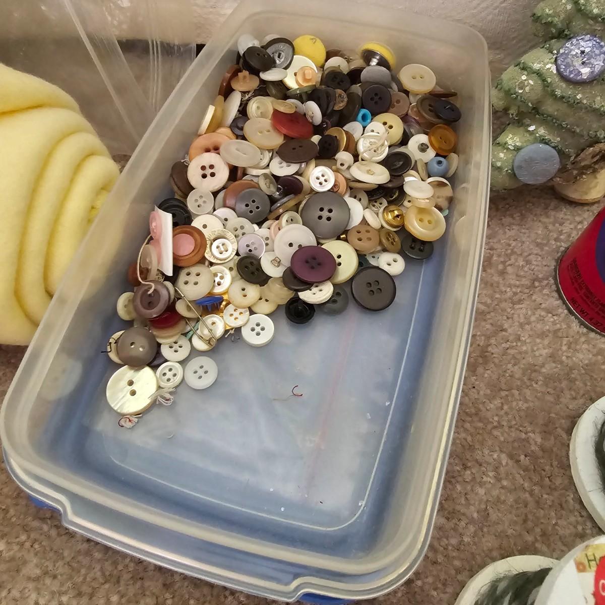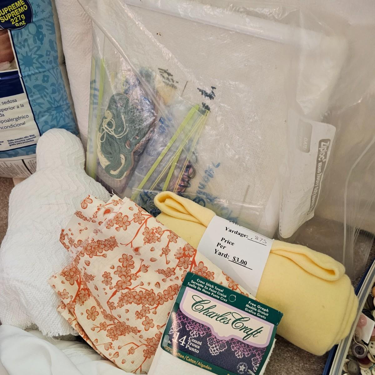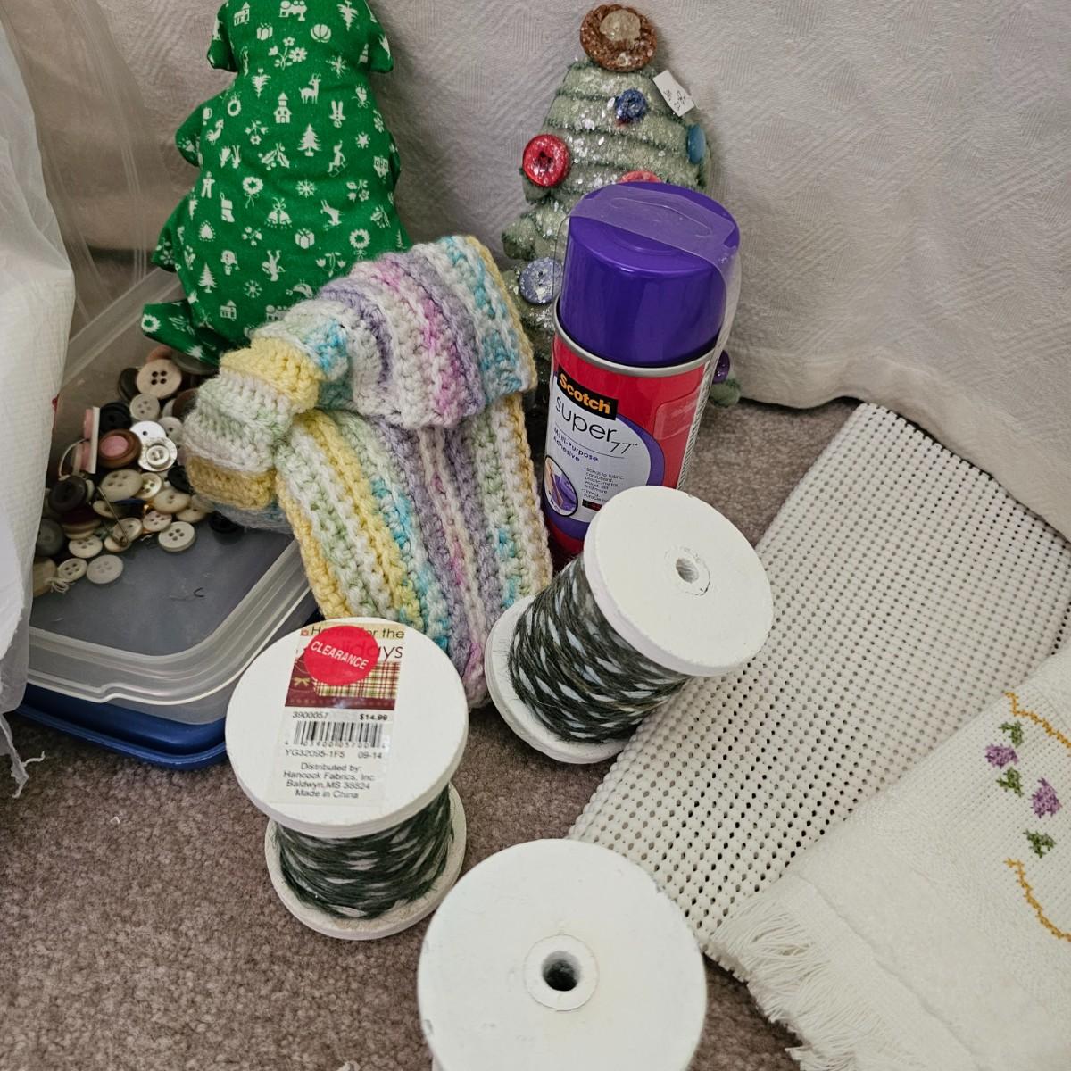 Needlepoint items, kits, thread, books, patterns, material, buttons, more. Lots of different styles to choose from. Container included, see photos for details. Shipping available.