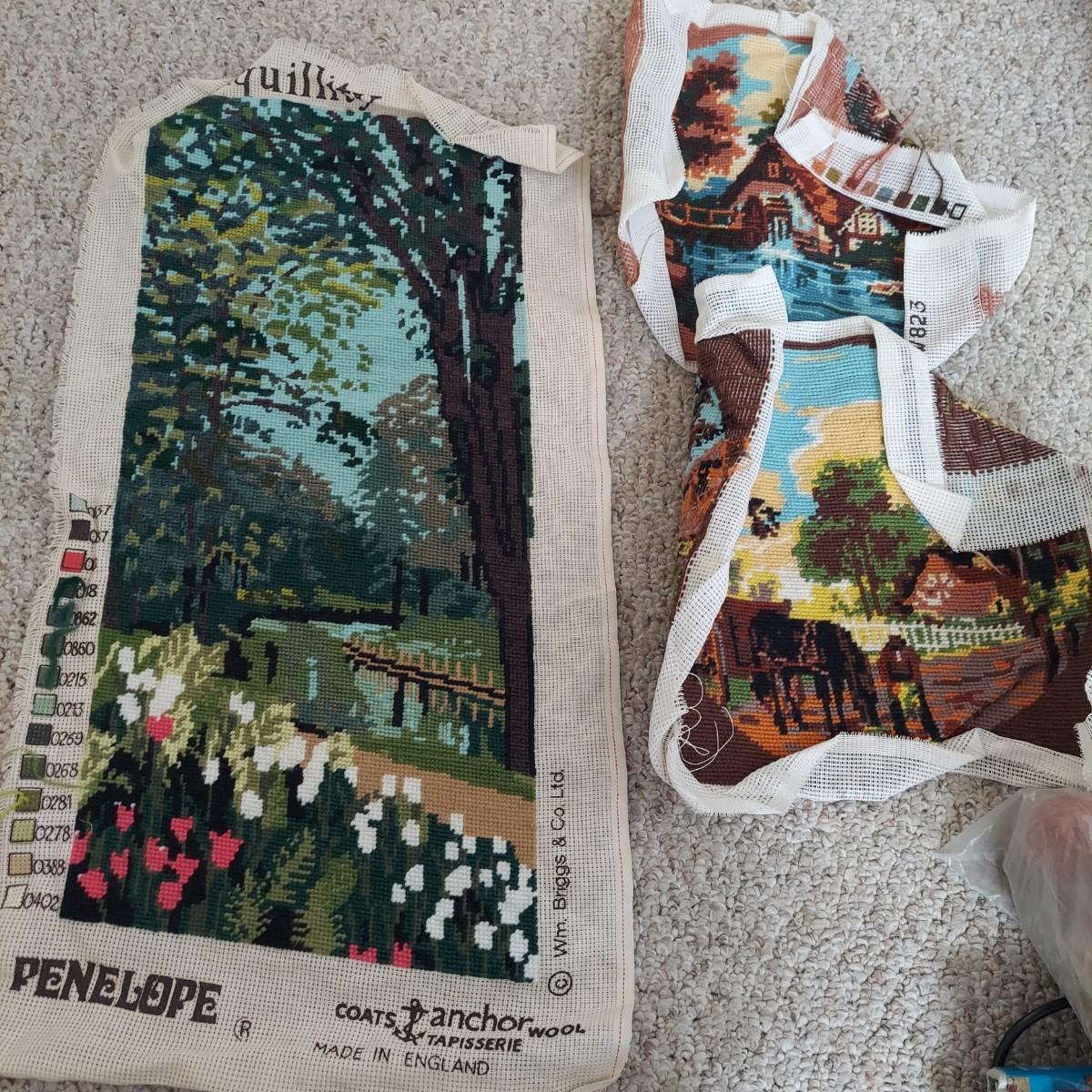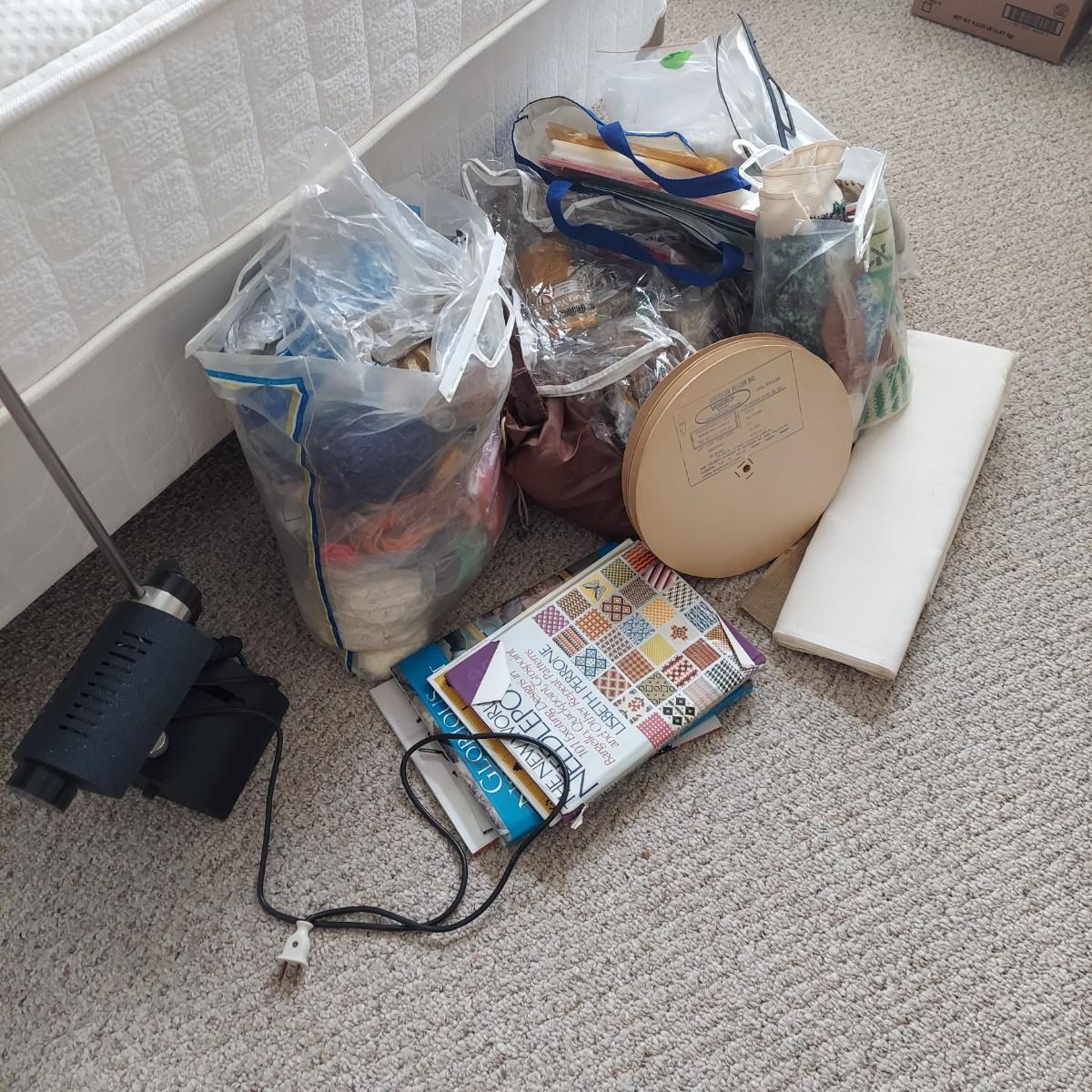 Large lot of needlepoint supplies. Light powered on when plugged in. Please see photos for details. Shipping available