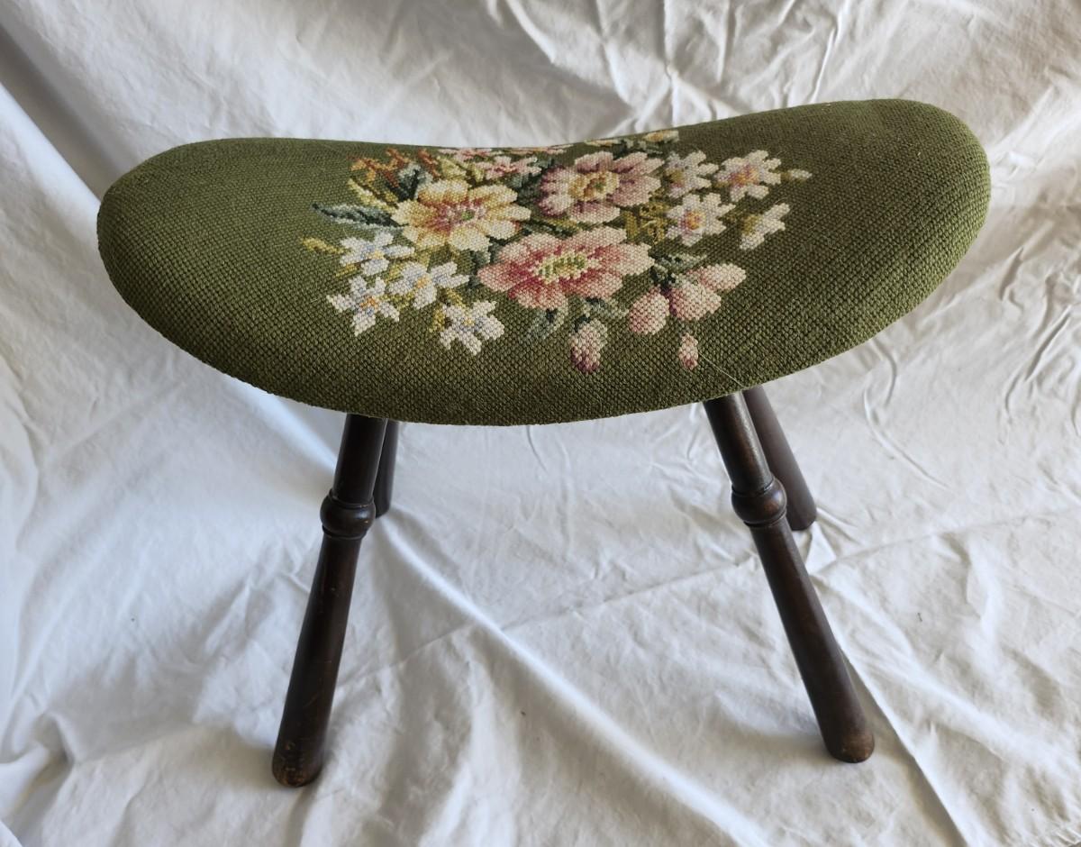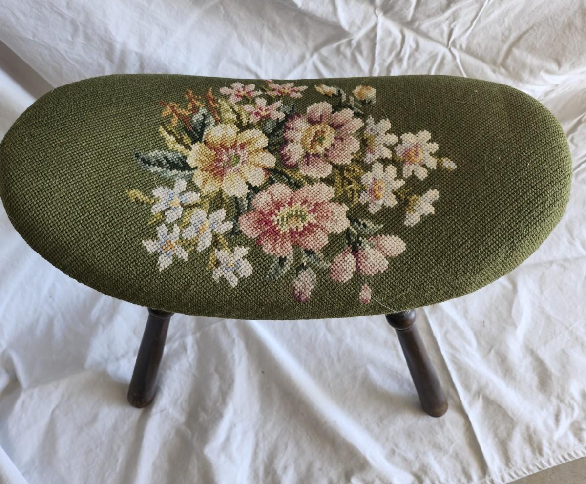 This sharming little footstool is in very nice condition. It is 20 inches wide by 15 inches tall.