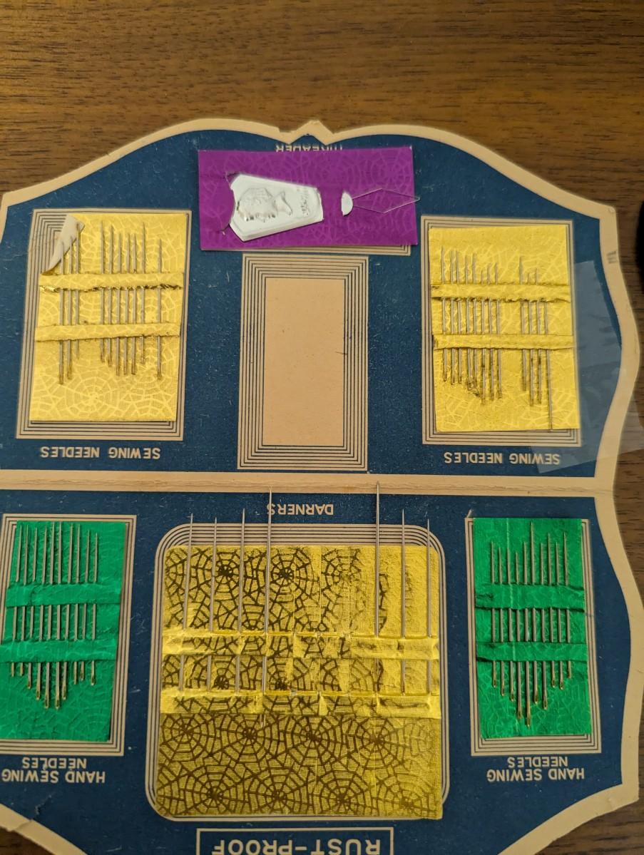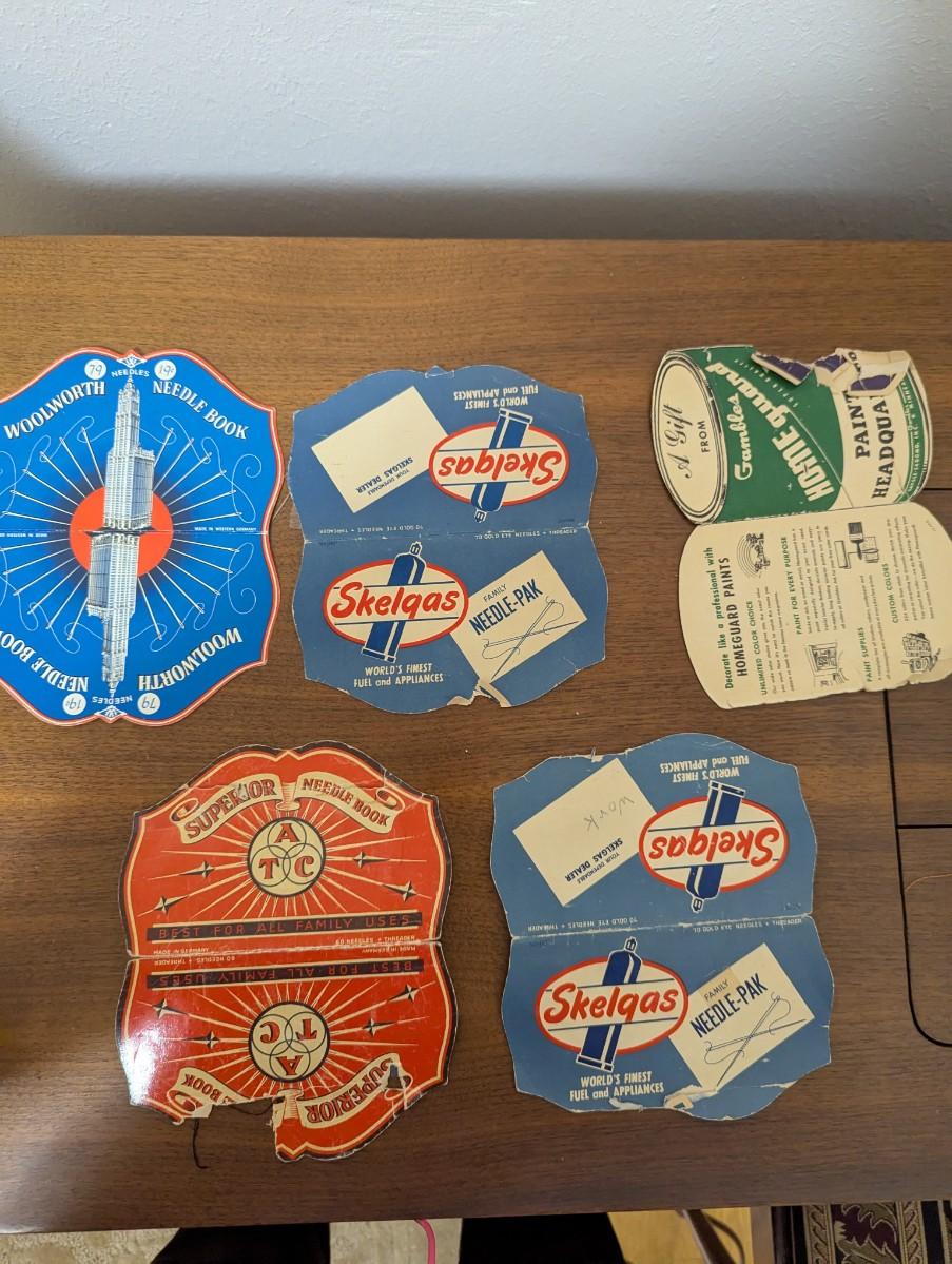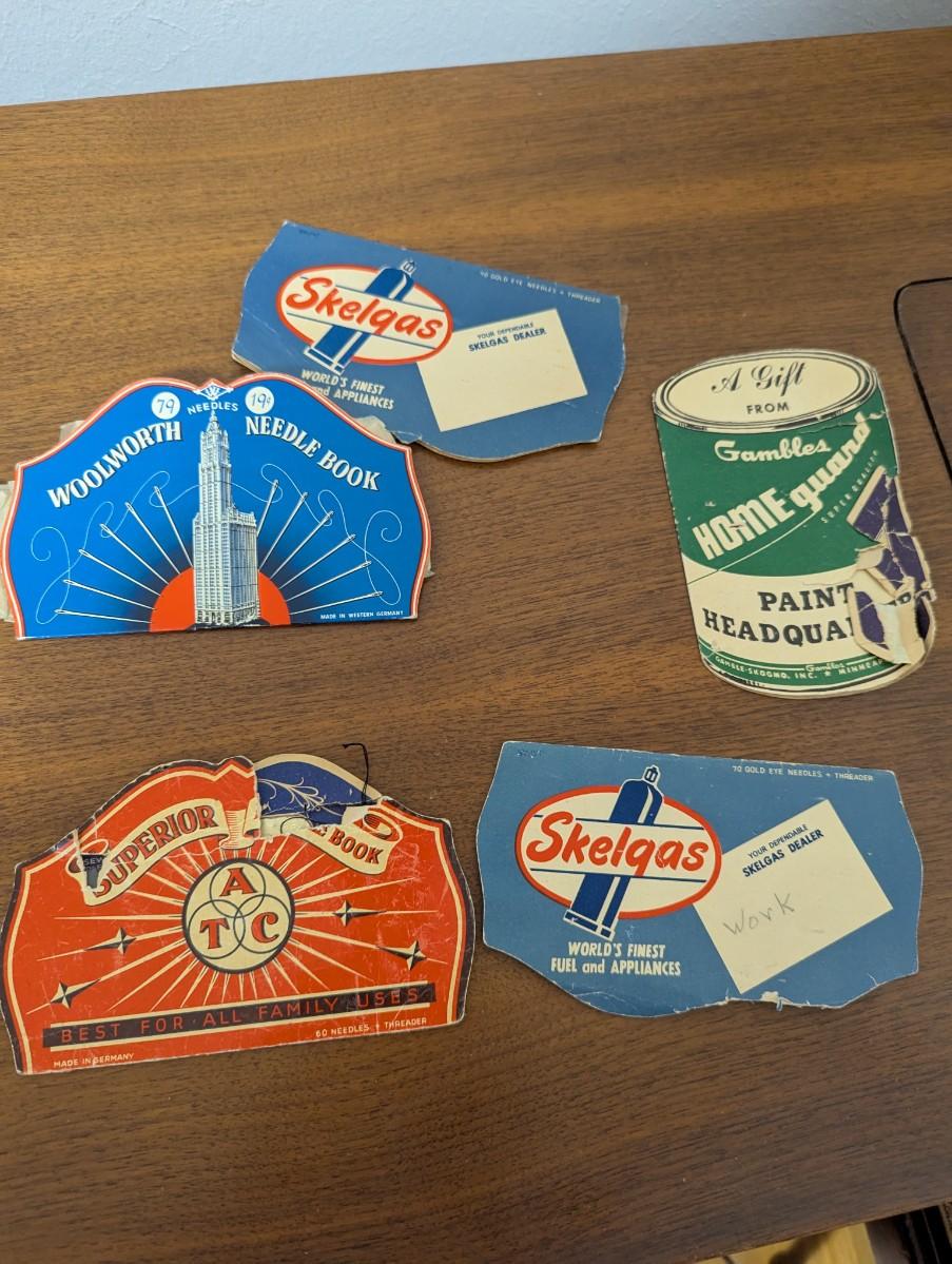 Vintage sewing needles with advertisement on the packet cover. Clever idea.