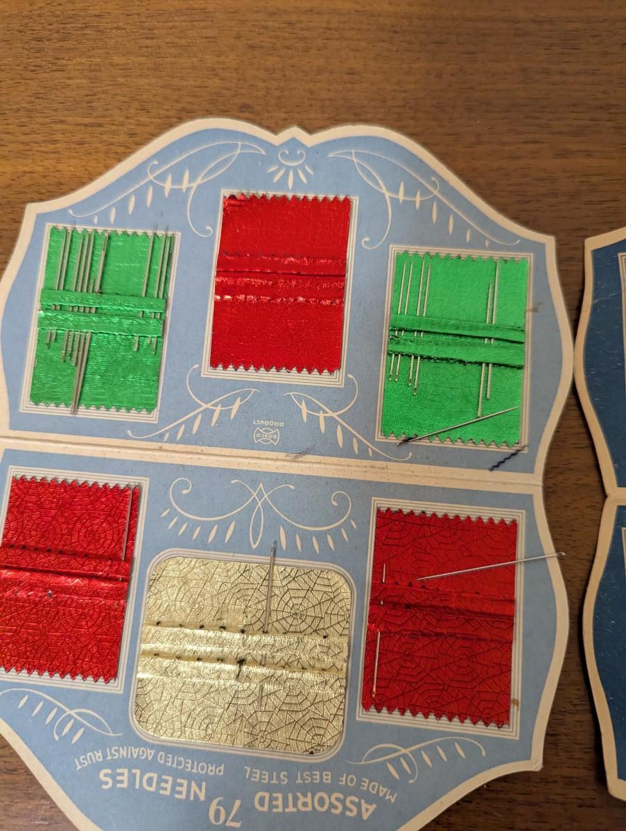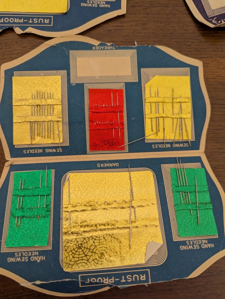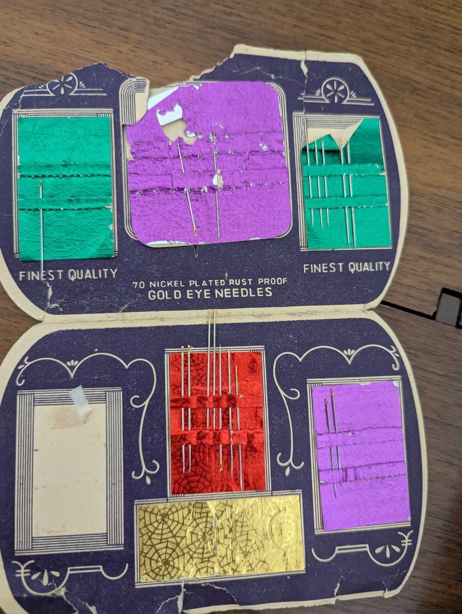 Vintage sewing needles with advertisement on the packet cover. Clever idea.