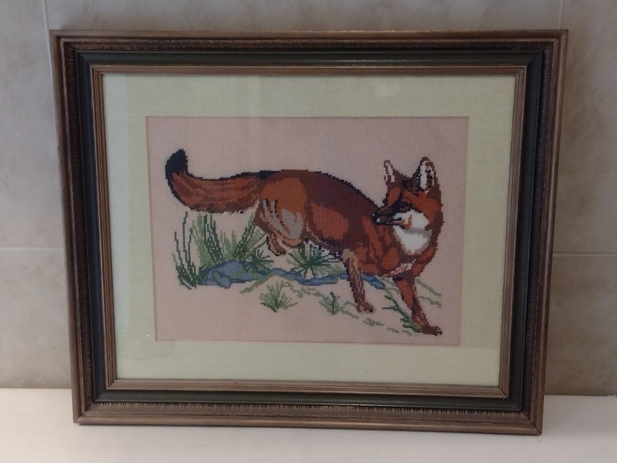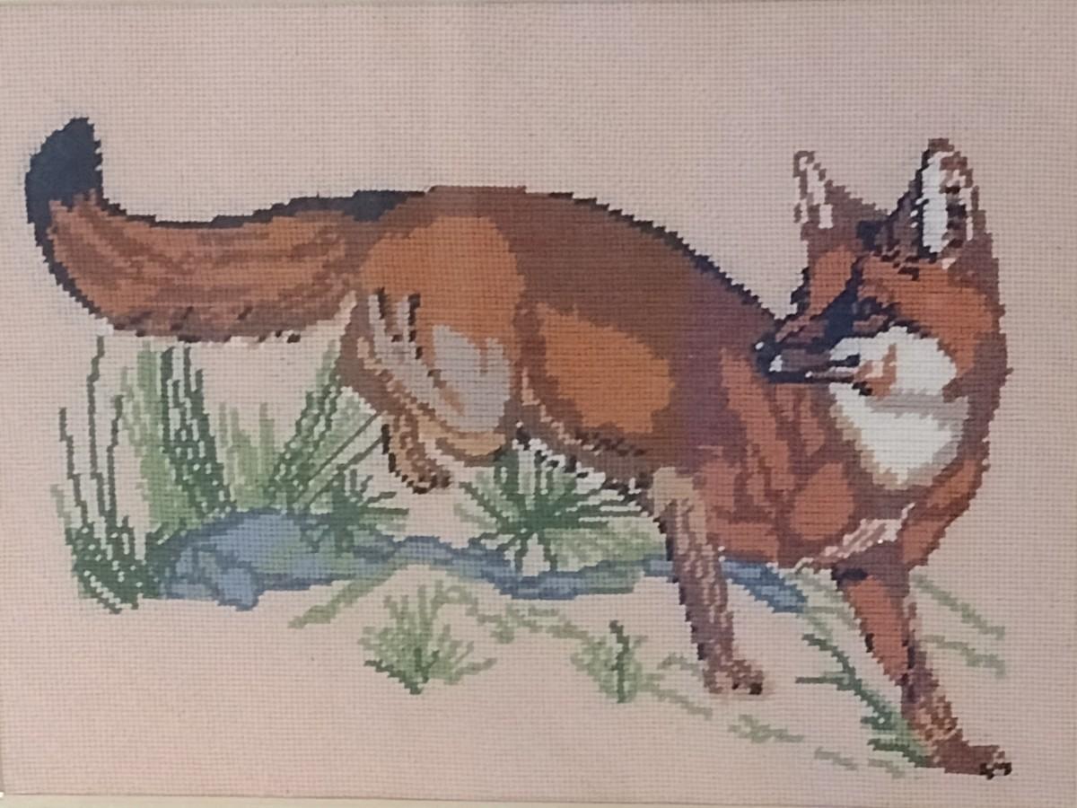 Wood Framed Fox Needlework