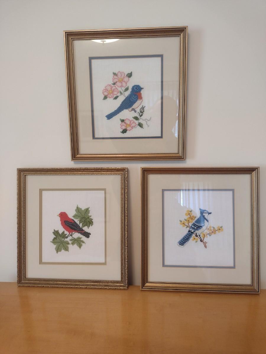 Set of Three Needlework Bird Themed Pieces