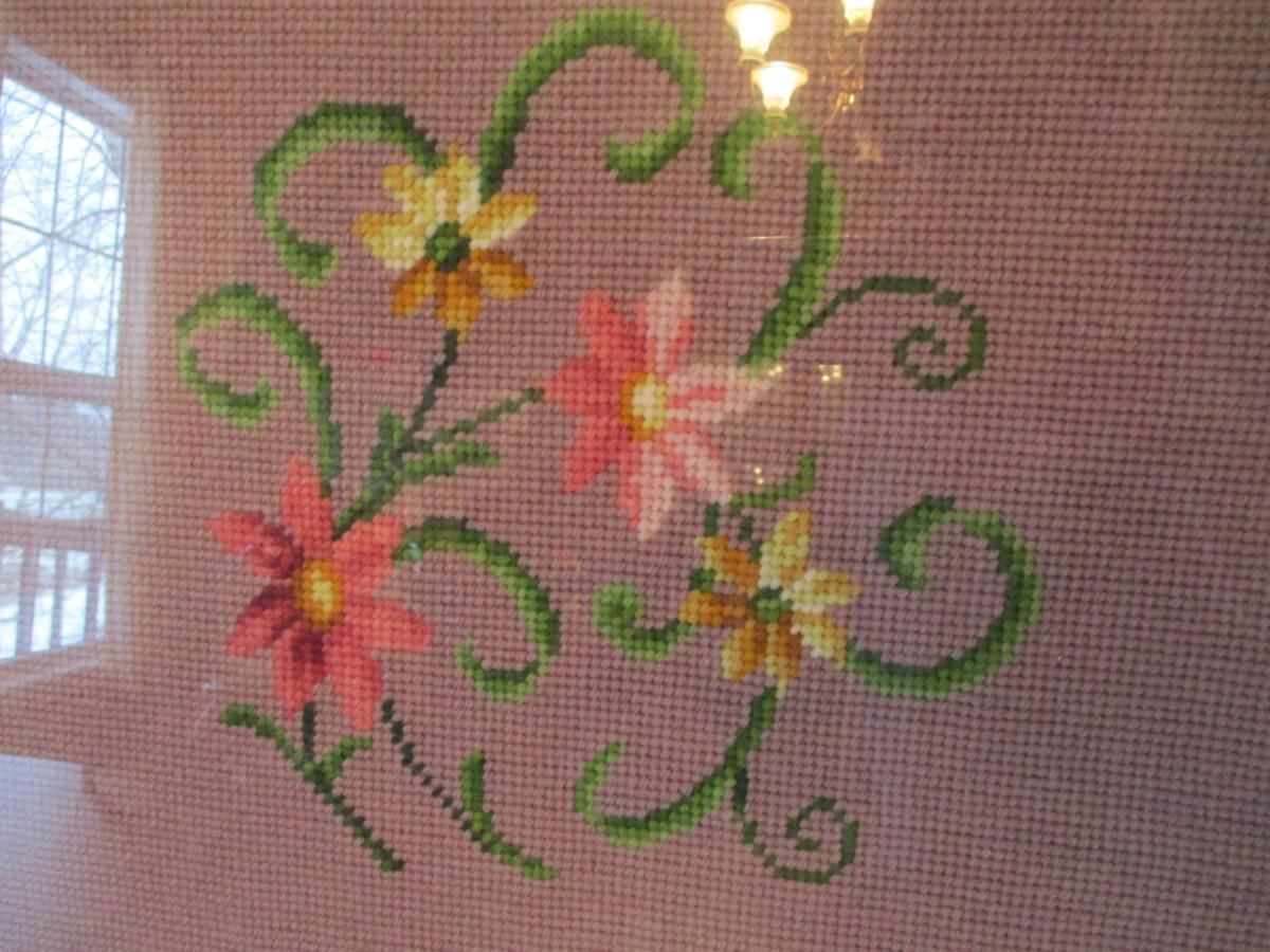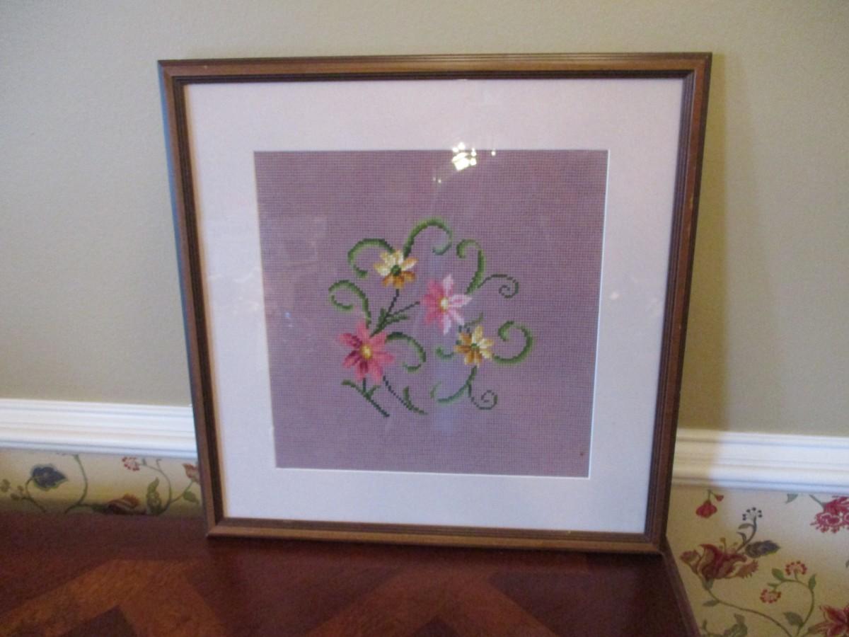 Needlework Flower Design Wall Hanging 18 1/2" x 19"