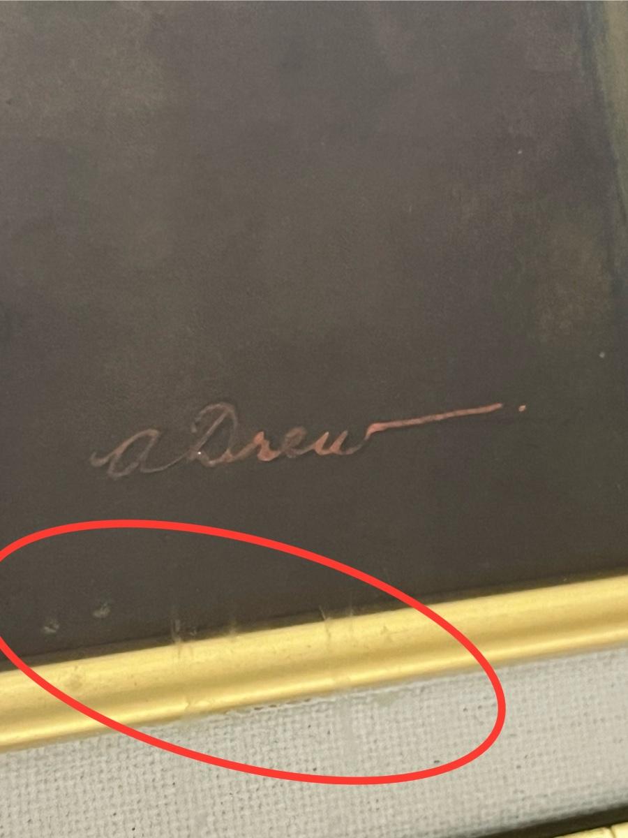 May need to be reframed due to water stains on glass, see photos ~ 25” H x 27” W