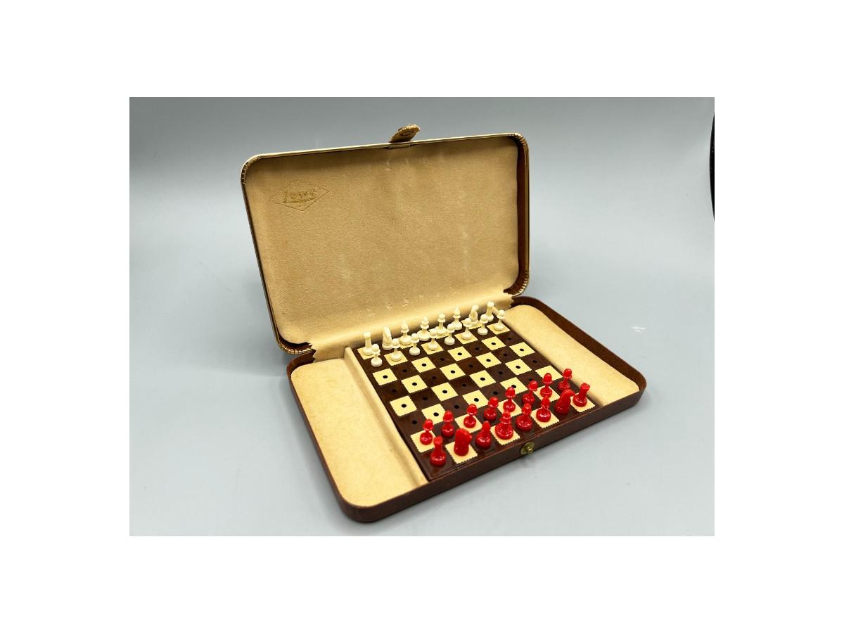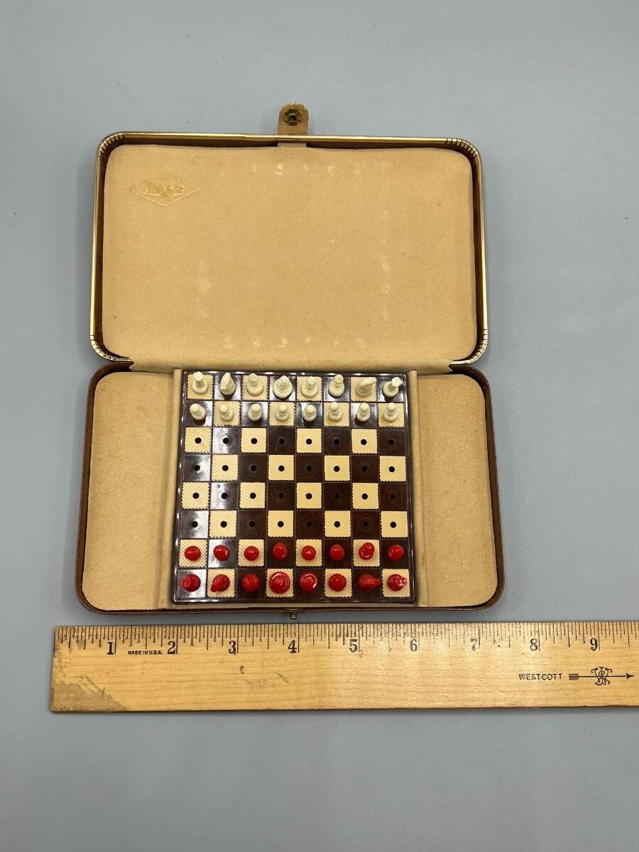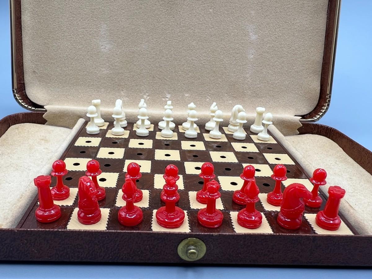 Vintage Lowe Pin Peg Travel Plastic Chess Set with Original Carrying Case