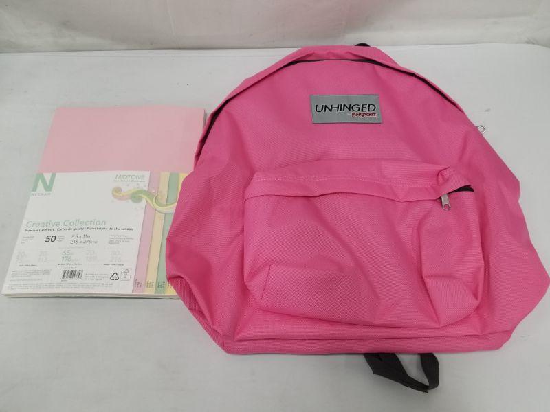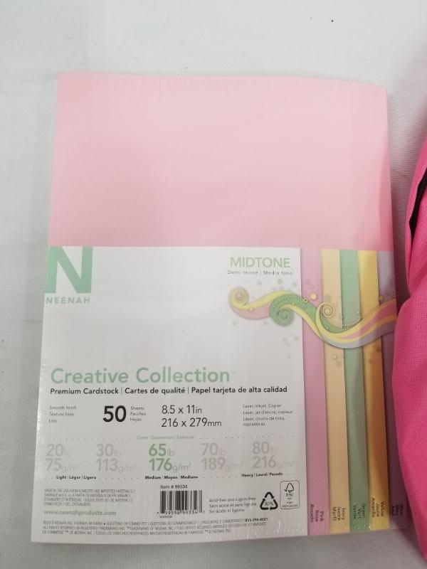 Neenah Cardstock Pack (50ct Asst Colors), and Jansport Backpack (Pink) - New
