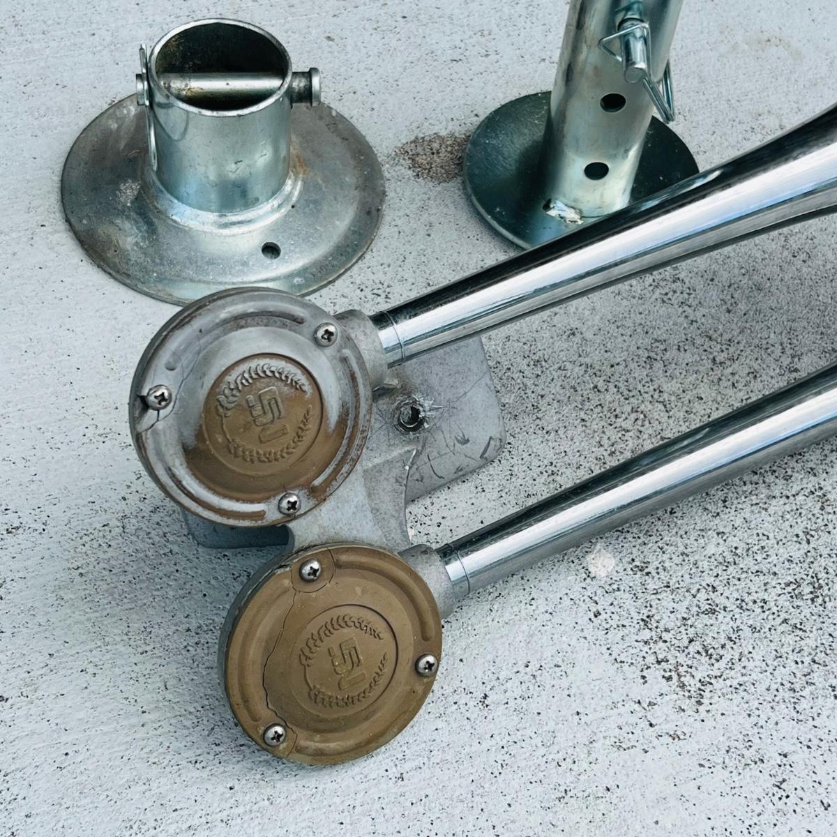 Lot includes a Neiman Signaltone boat horn and two stainless steel rod holders.