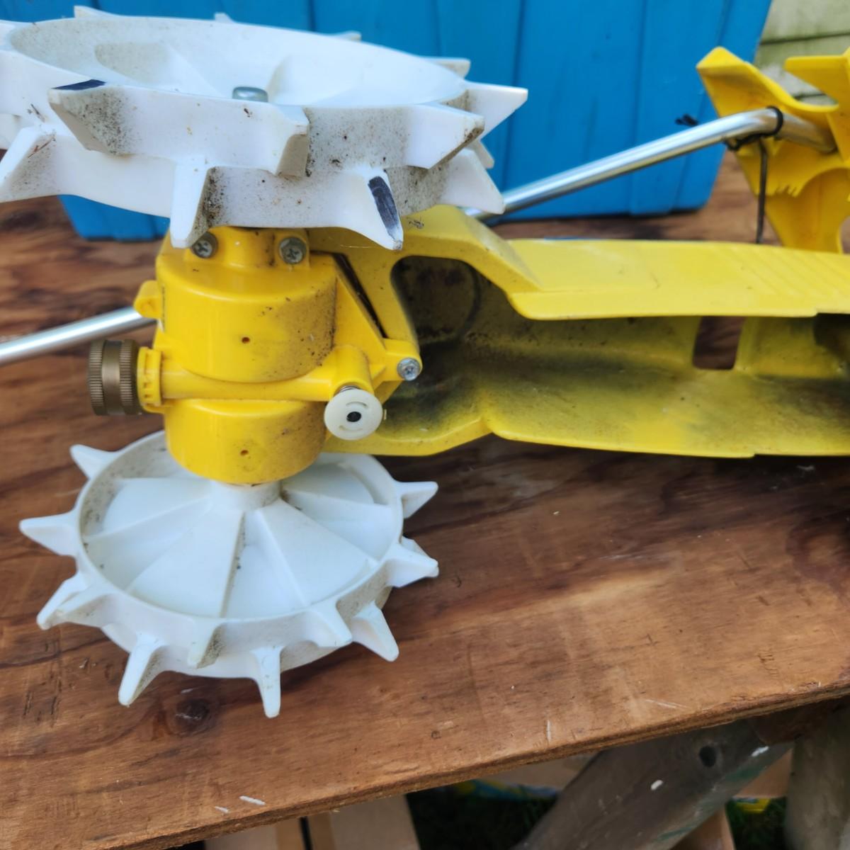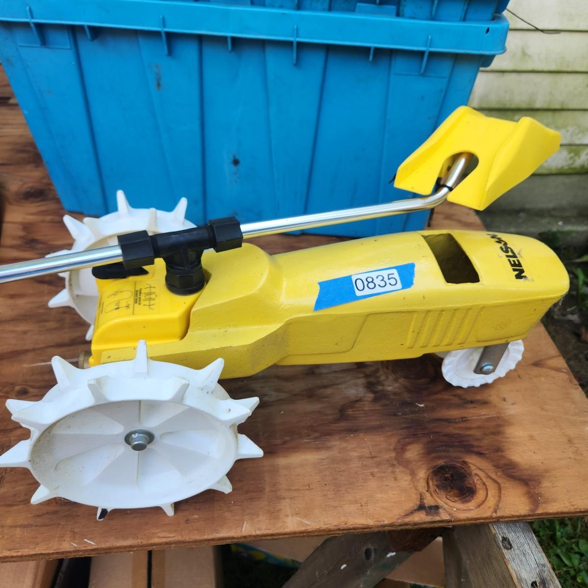Nelson "Rain Train" Metal Tractor Traveling Lawn Yard Sprinkler Yellow
