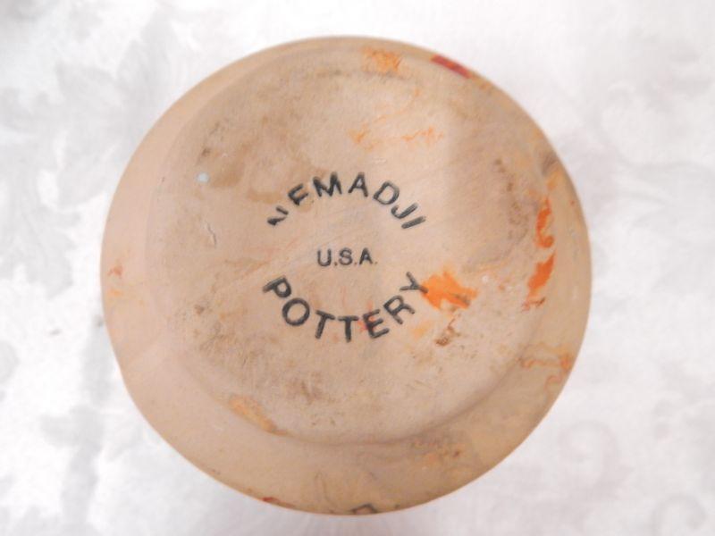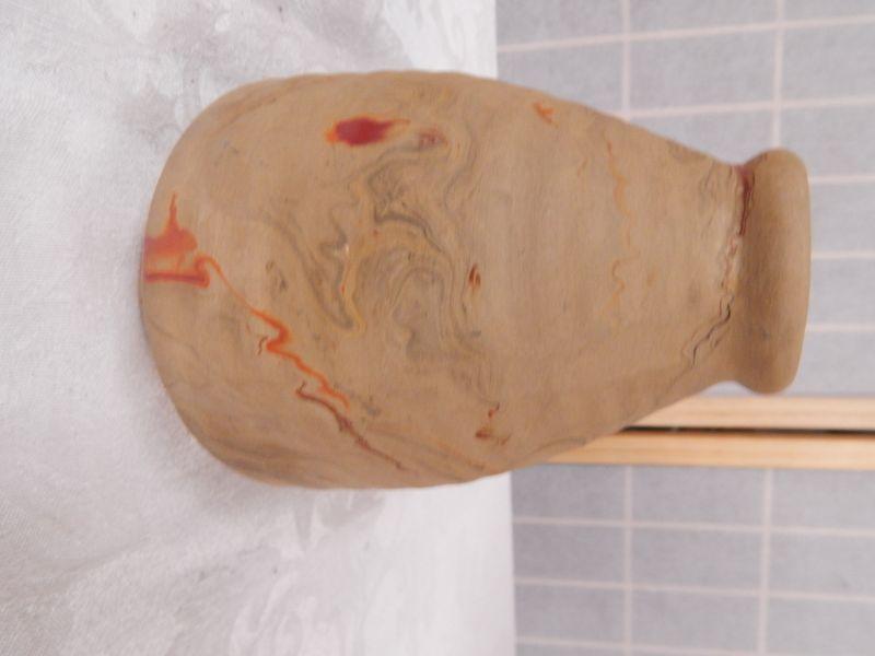 Nemadji Beehive Shaped Ridged Vase - 6" Tall - Tan w/ Orange/Black Swirls