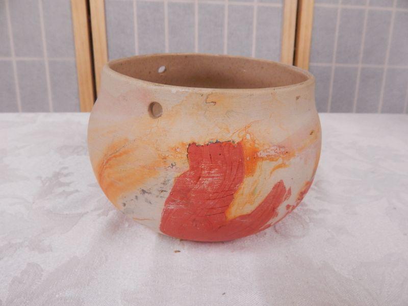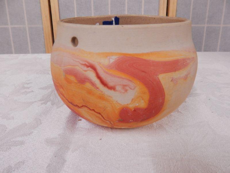 Nemadji Planter with Holes for Hanging - 4-1/2" tall, 6" wide - Red & Orange Swirls