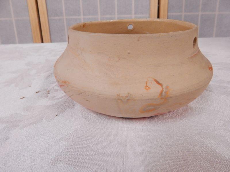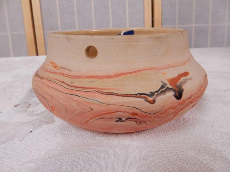 Nemadji Planter with Holes for Hanging - 3" tall, 7" wide - Red & Black Swirls