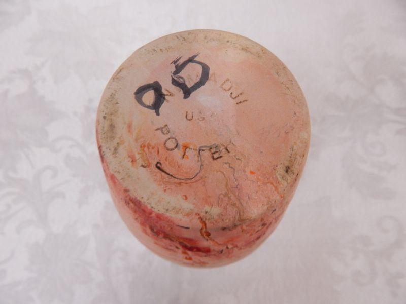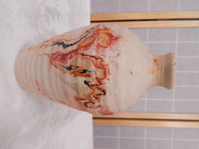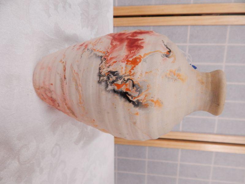 Nemadji Ridged Small Mouth Vase 8-1/2" tall - Red & Orange Swirls