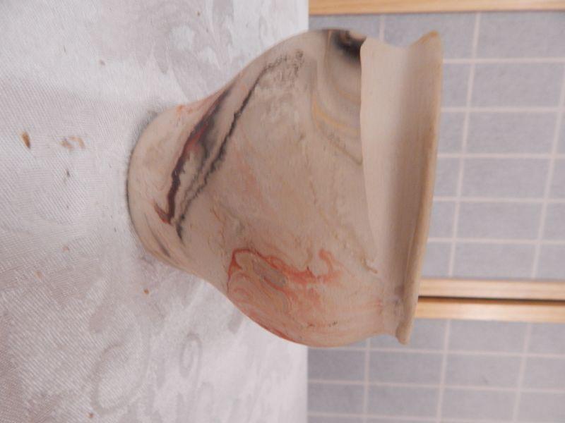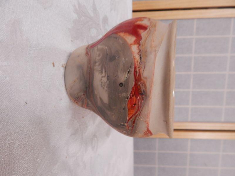 Nemadji Short Bowl Vase 4" Tall - Tan w/ Red & Grey Swirls