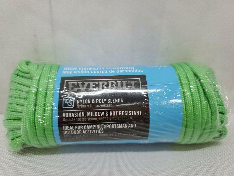 Neon Green Braided Paracord 1/8 Inch x 50 Ft. High Visibility Polypropylene Rope