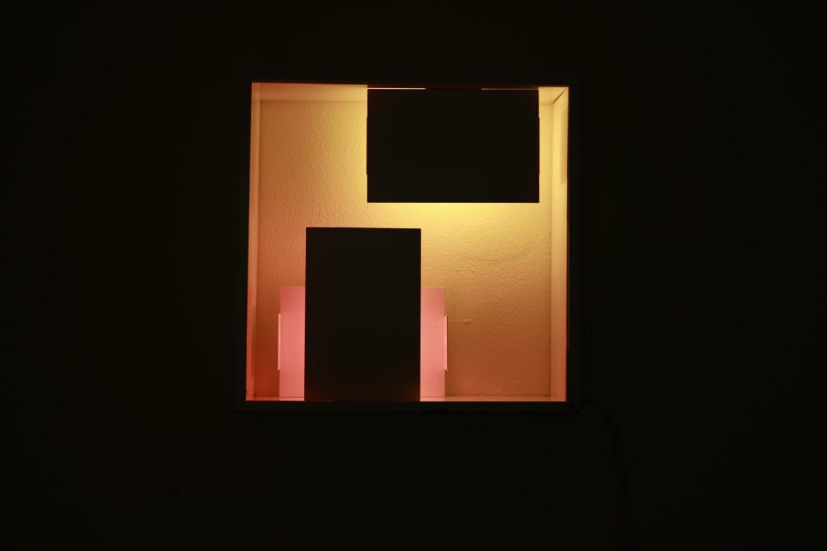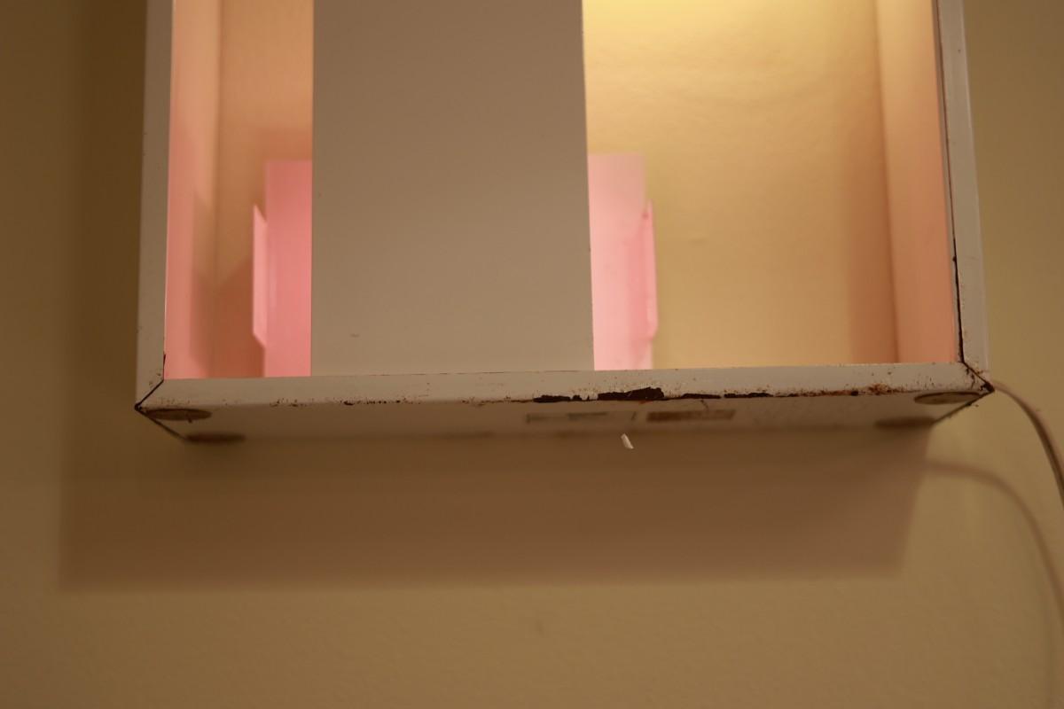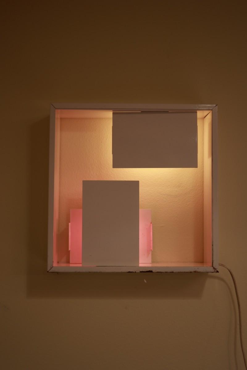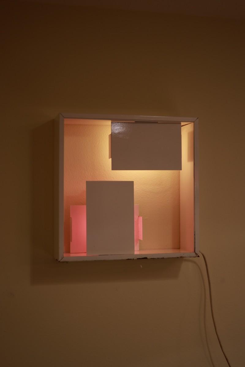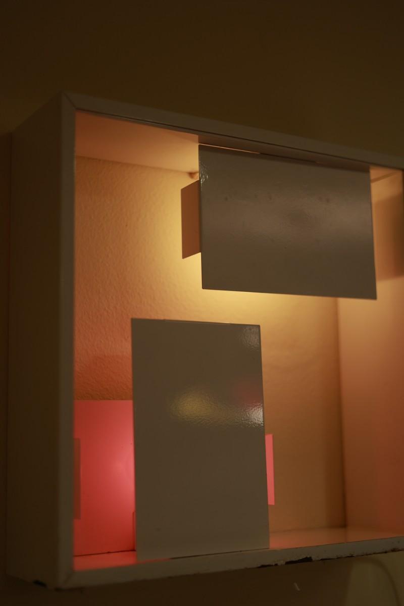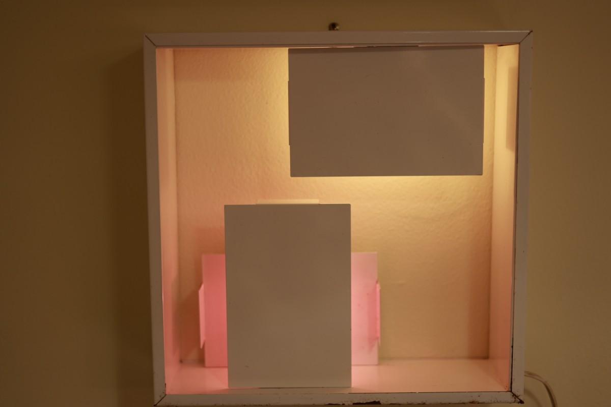 Fully metal lamp white lacquered with different symmetrical plates for light.