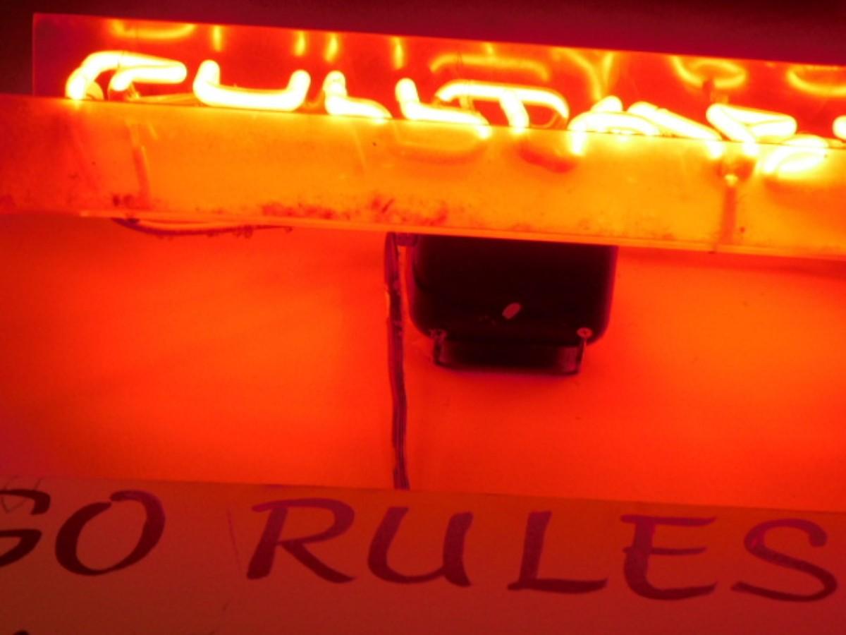 Neon Sign 'Pull Tabs' Wall Hanging Sign. Bring ladder and tools to remove from wall. Expect some wear or scratches to finish. Shipping option available via freight or local mover at Buyer's expense. Buyer must have all shipping scheduled within the stated dates and times of pickup. Recommended local mover is Beaty Bros. Moving 828-201-2982