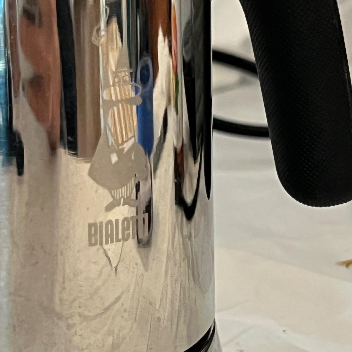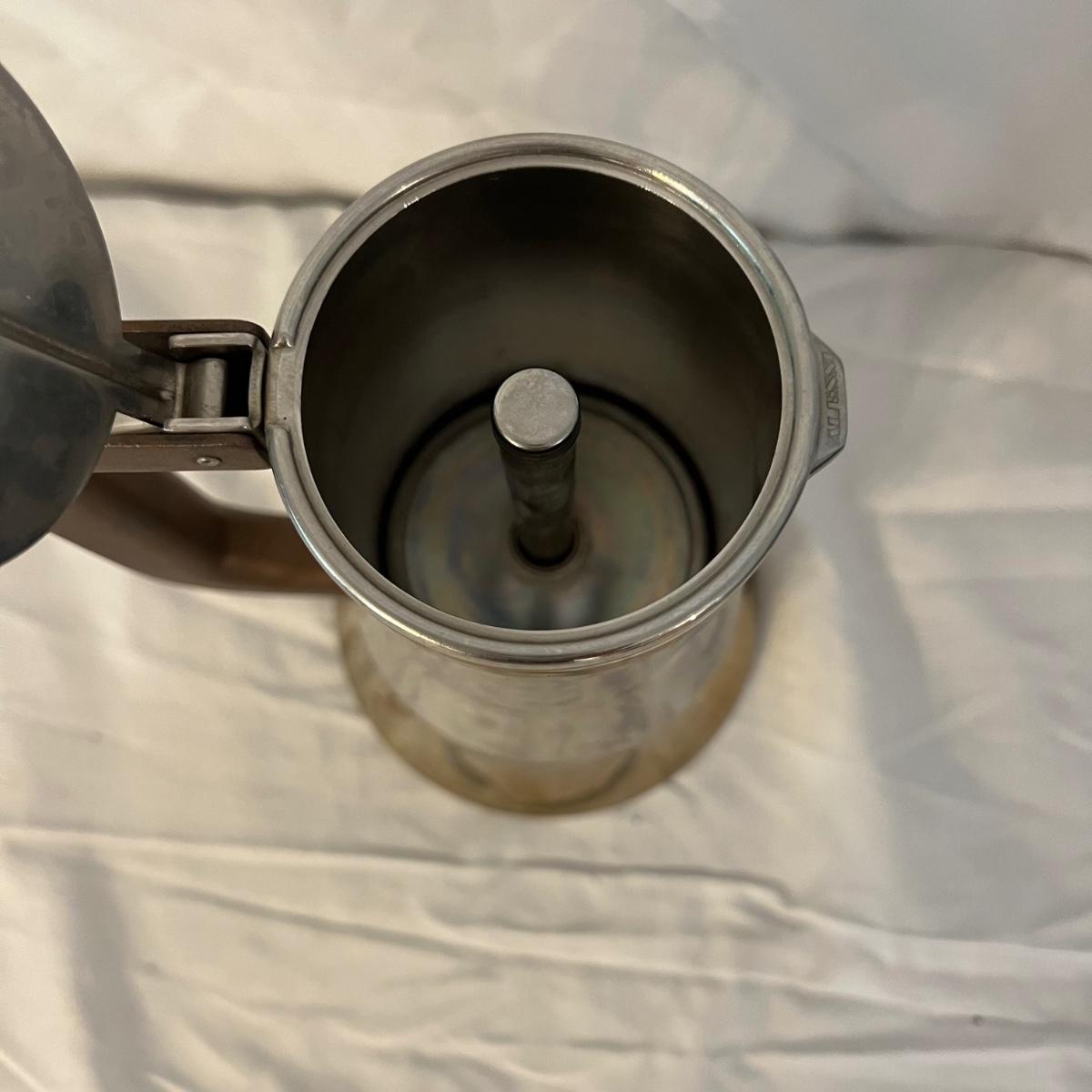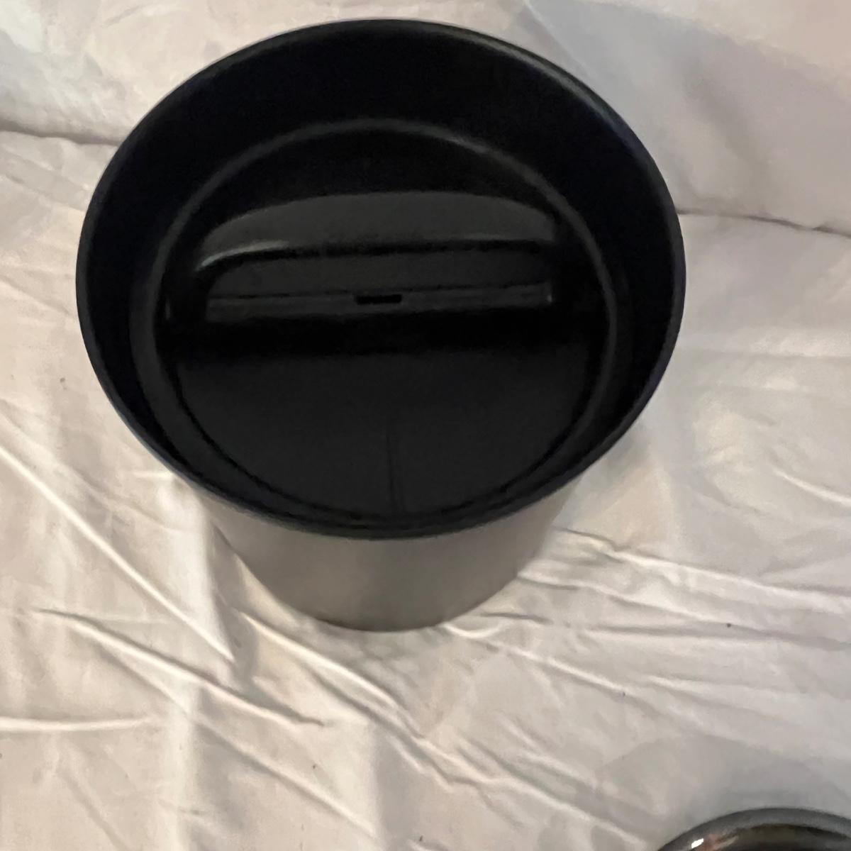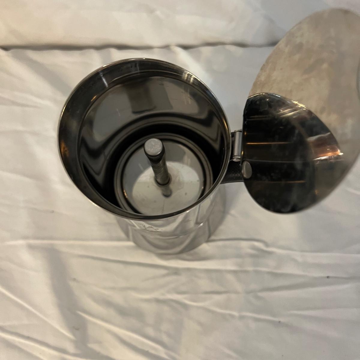 Breville Nepresso Essenza Mini appears to have never been used. It powers on when plugged in. Airscape coffee canister measures 7"D x 8"H. Bialetti stovetop espresso maker and Alessi stovetop espresso maker. Also a Fixie manual coffee grinder and a carafe.