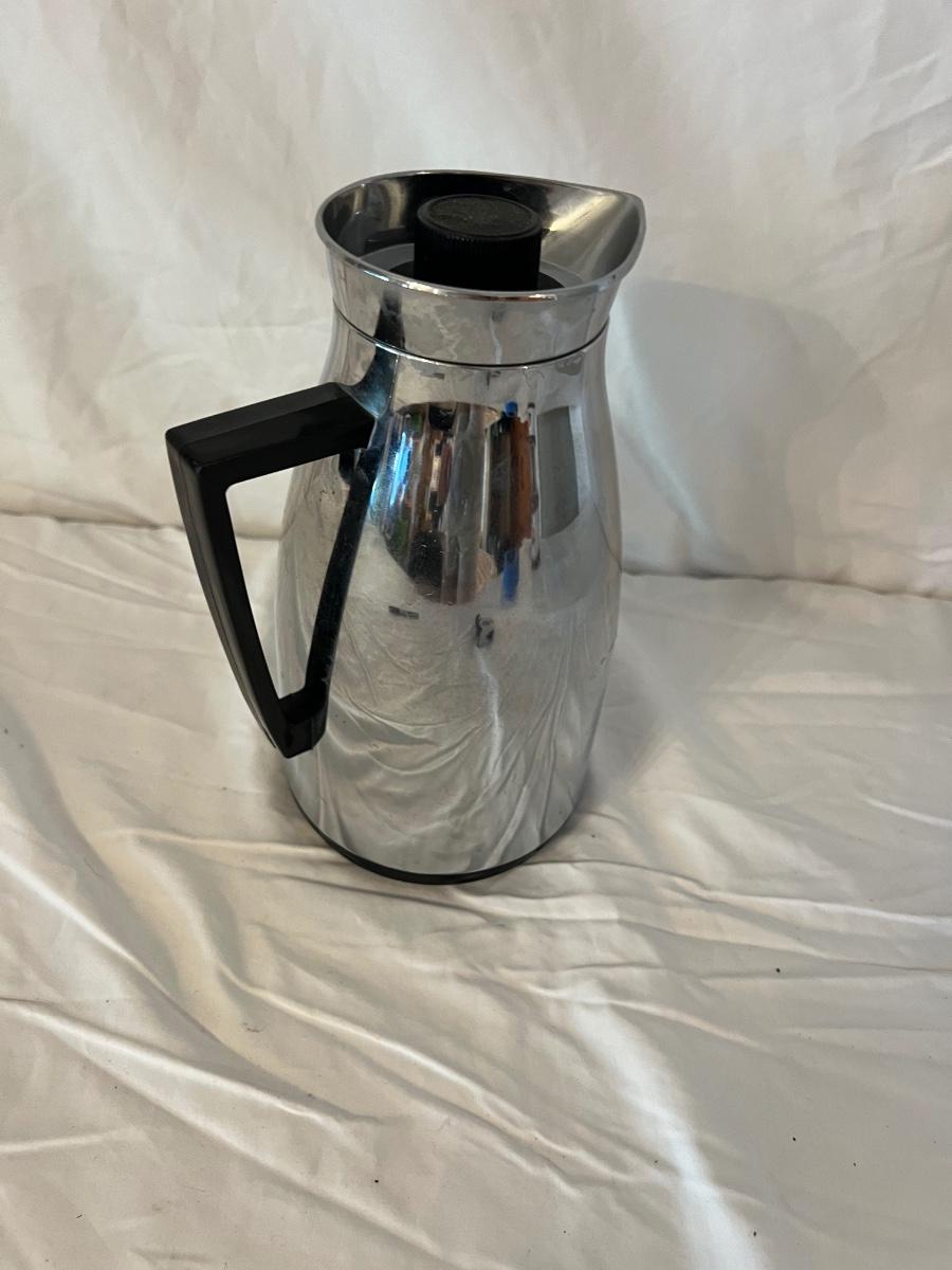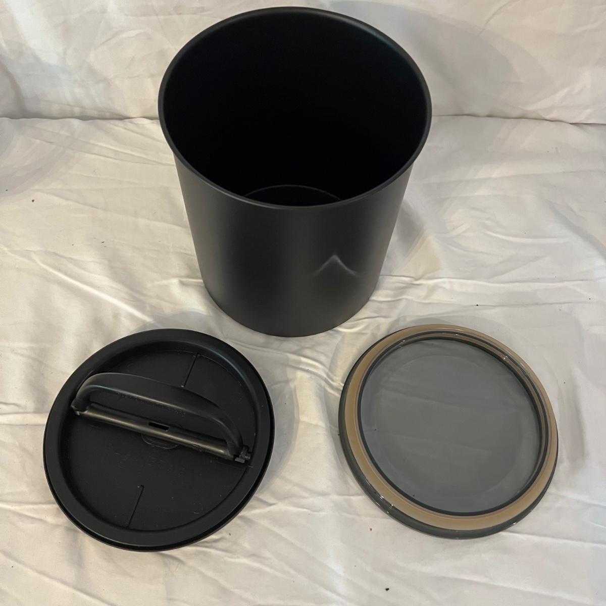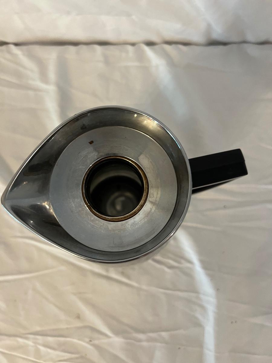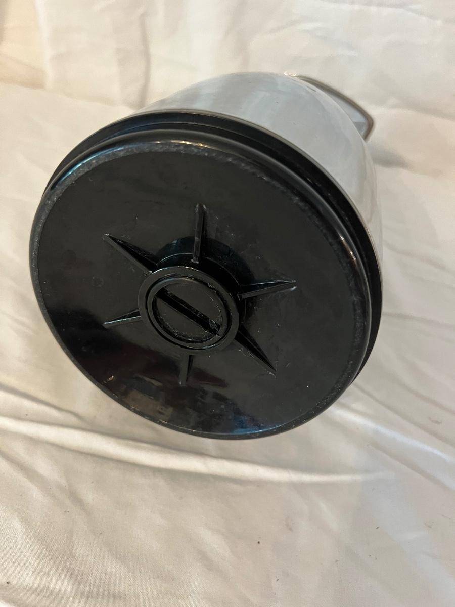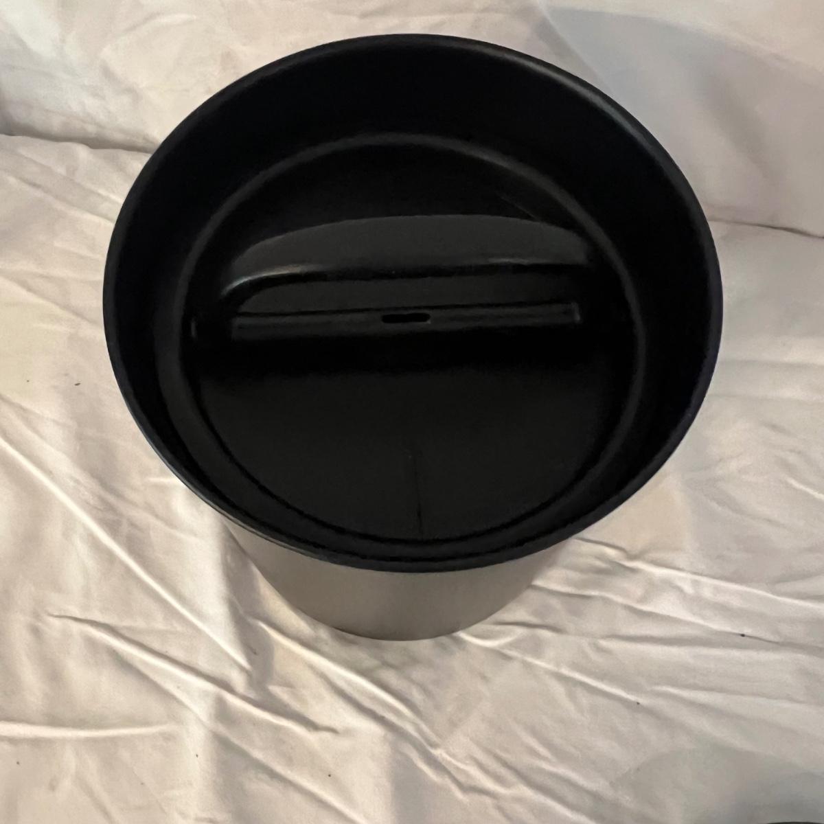 Breville Nepresso Essenza Mini appears to have never been used. It powers on when plugged in. Airscape coffee canister measures 7"D x 8"H. Bialetti stovetop espresso maker and Alessi stovetop espresso maker. Also a Fixie manual coffee grinder and a carafe.