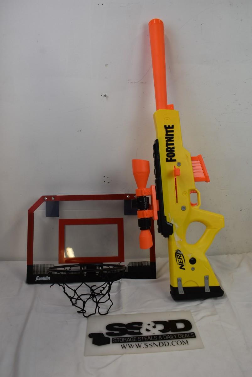 Nerf Fortnite Rifle (missing bullets), Mini Basketball Hoop (LED Partially) Used