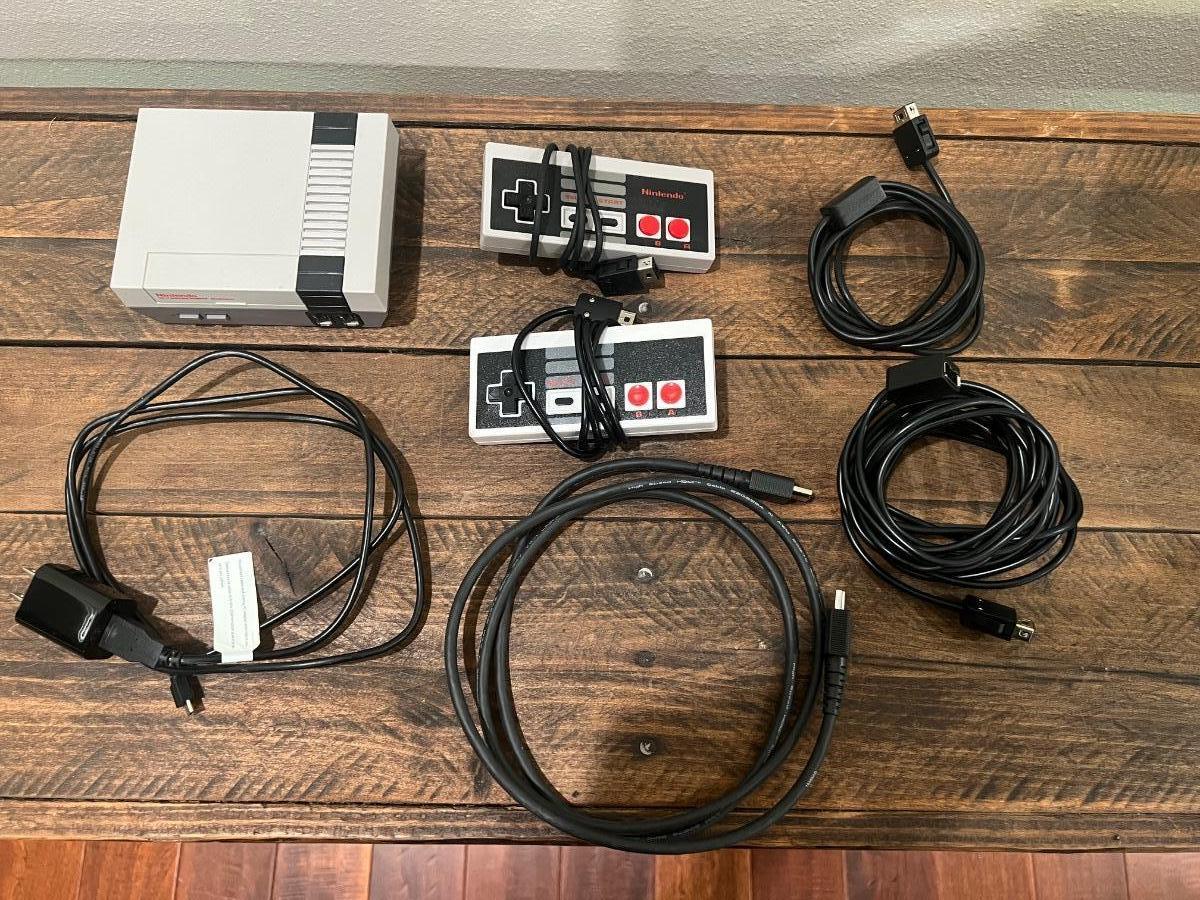 Comes with the NES Classic with 30 games built in, hdmi cable, power cable 2 controllers and 2 controller extenders. Works as it should.
