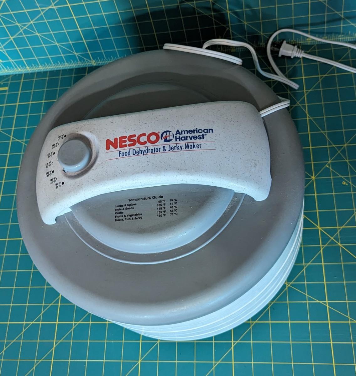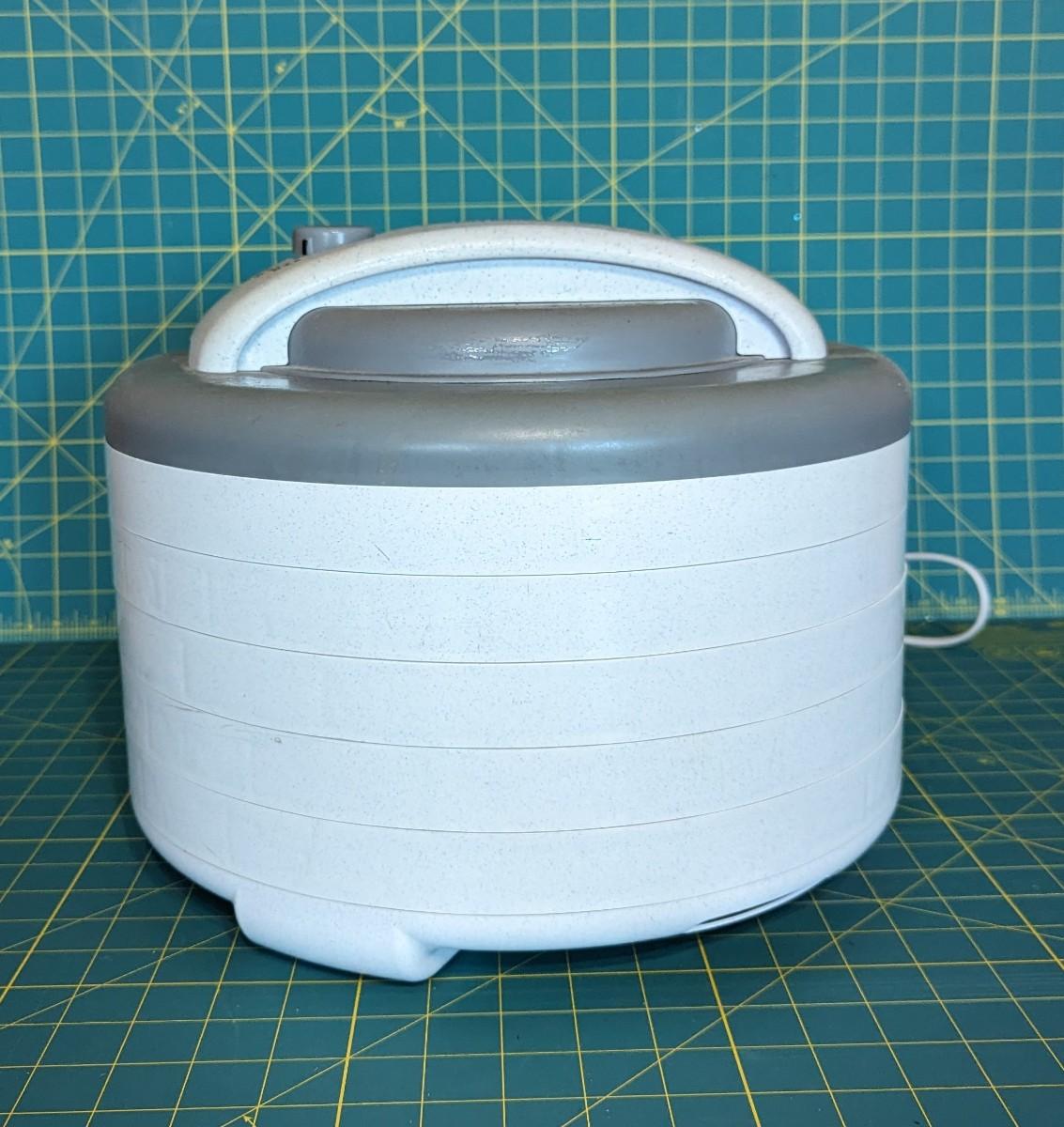 Has 5 removable trays so you can dehydrate as much or as little as you want. Works.