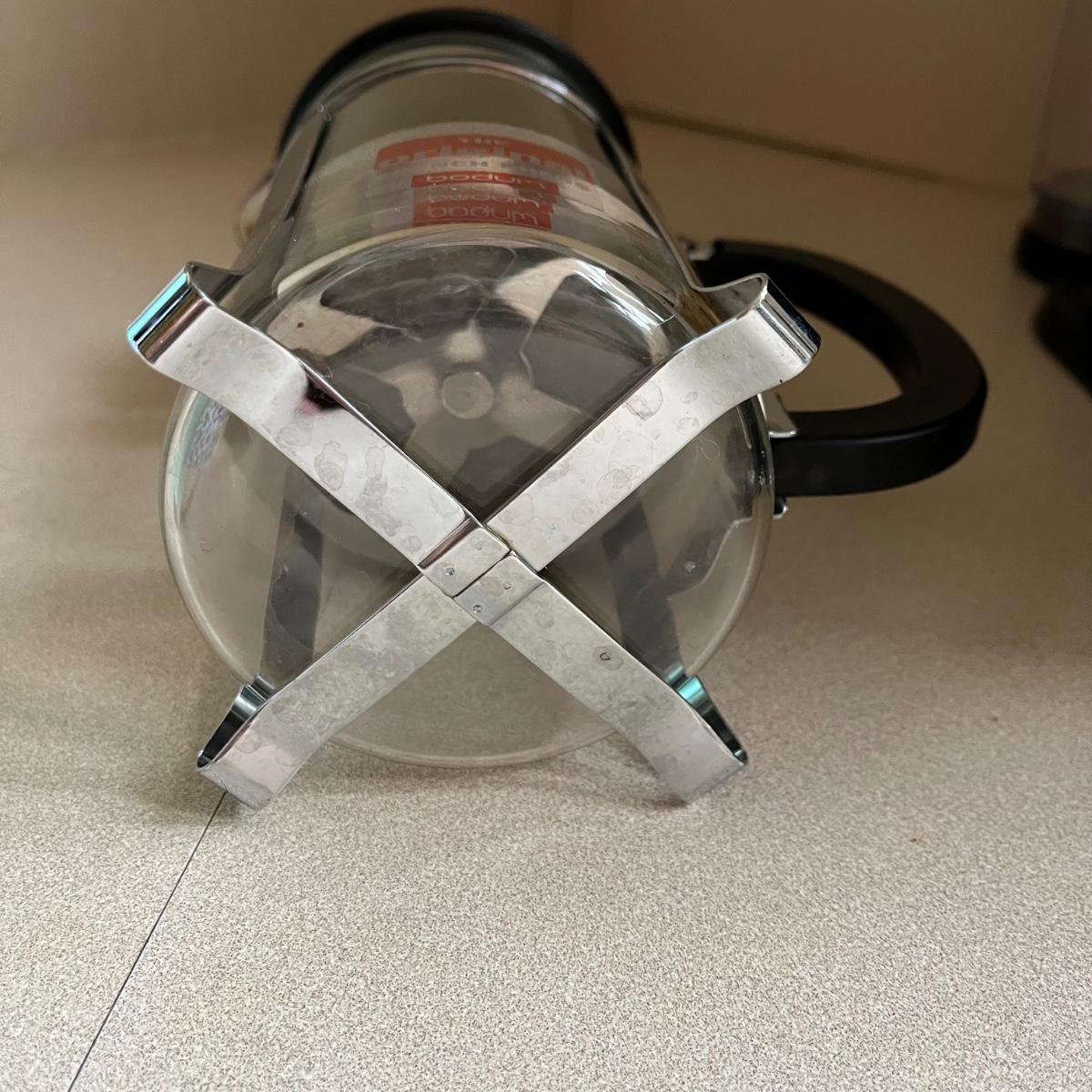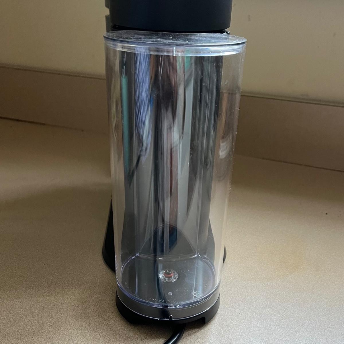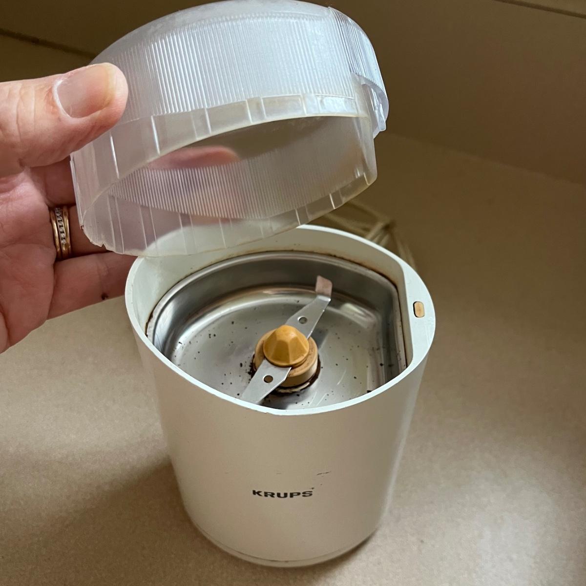 A Nespresso coffee and espresso maker with descaling cleaner, an Original french press by Bodum, a Nespresso glass carafe and a Krups whole bean coffee grinder. See picture for details.
