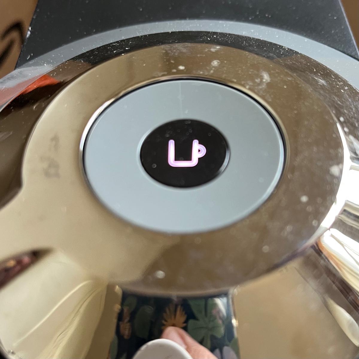 A Nespresso coffee and espresso maker with descaling cleaner, an Original french press by Bodum, a Nespresso glass carafe and a Krups whole bean coffee grinder. Nespresso powers up when plugged in. See picture for details.
