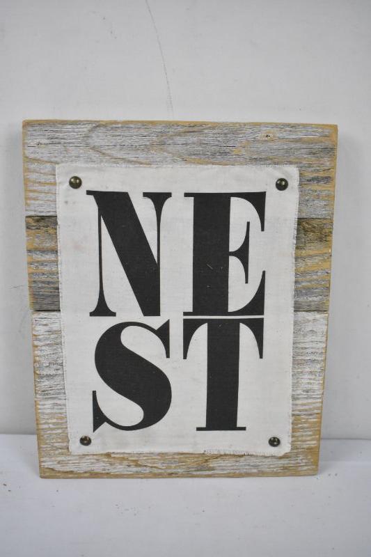 NEST Wood & Fabric Rustic Wall Decor White & Black 11" x 13.5"