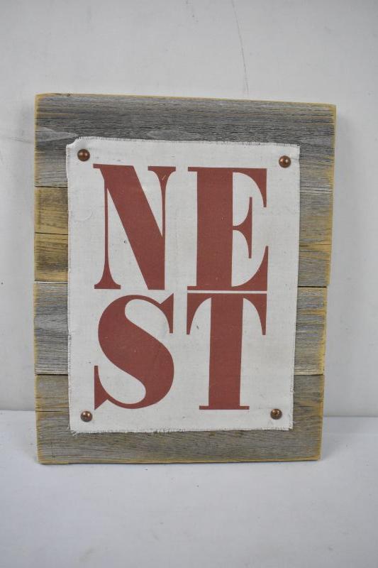 NEST Wood & Fabric Wall Decor Sign, Red & White 11" x 13.5"