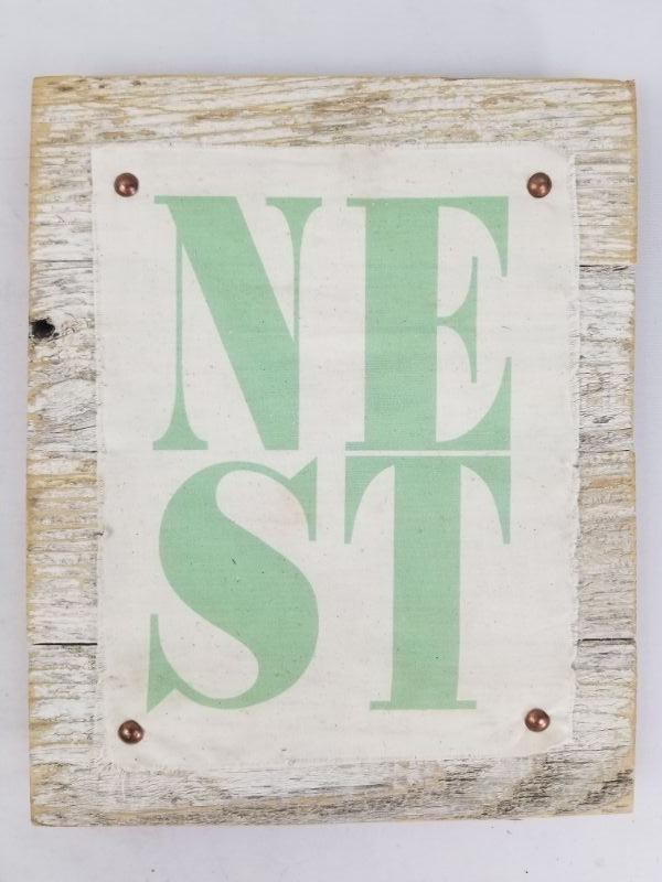 NEST Wood & Linen Wall Decor Sign White and Green 13.25" X 10.75"
