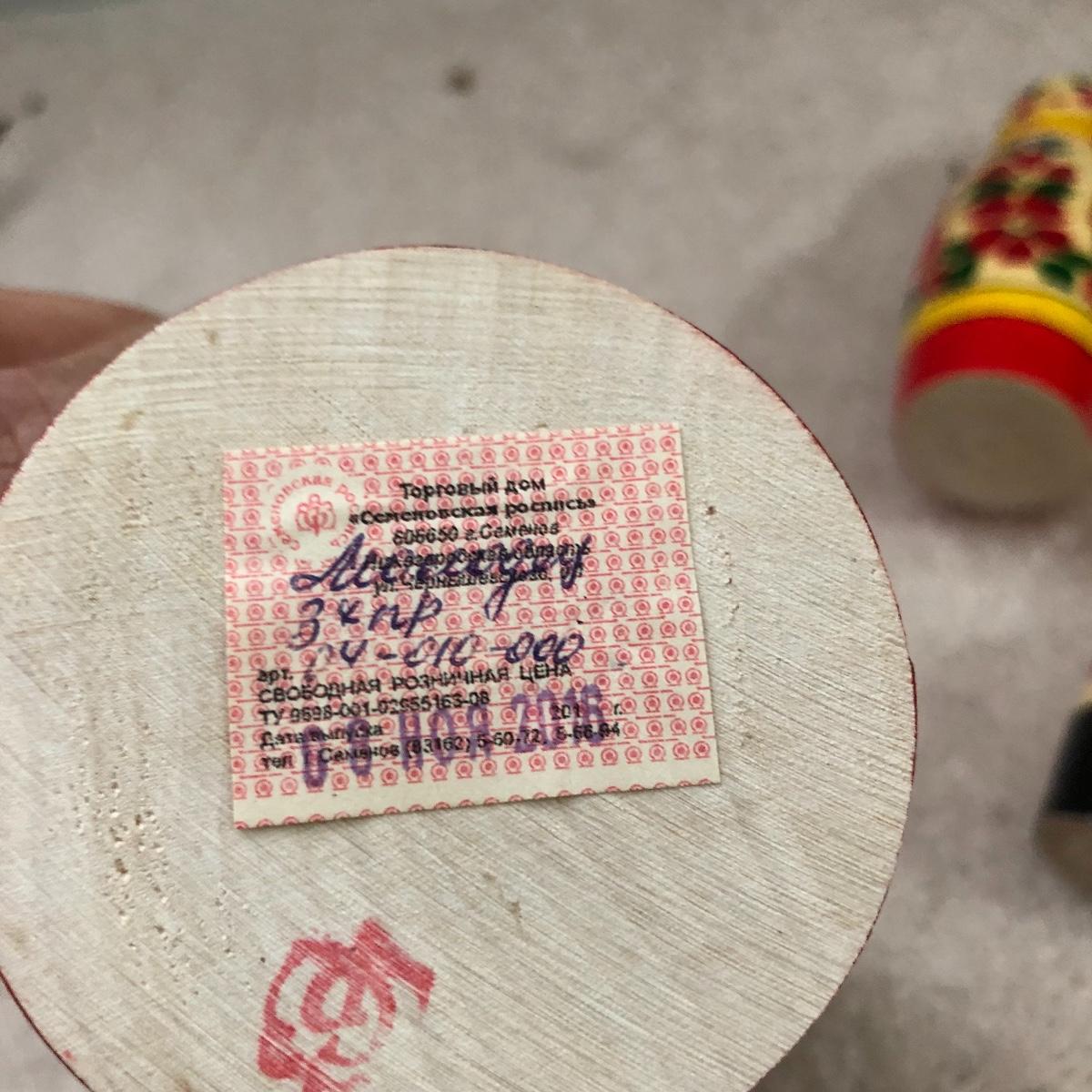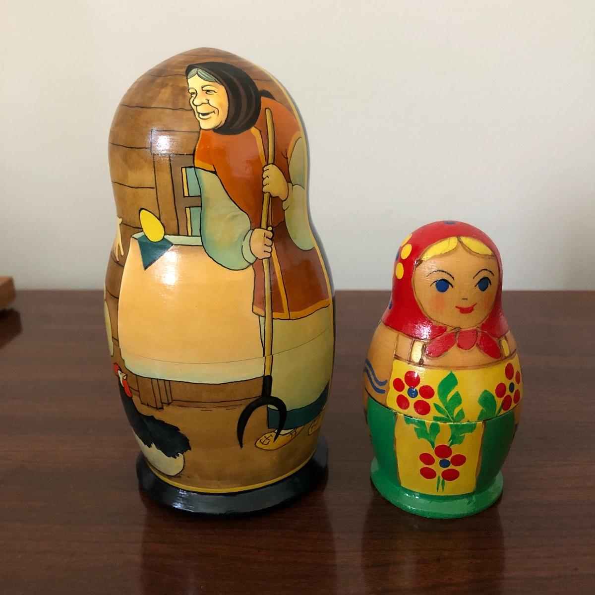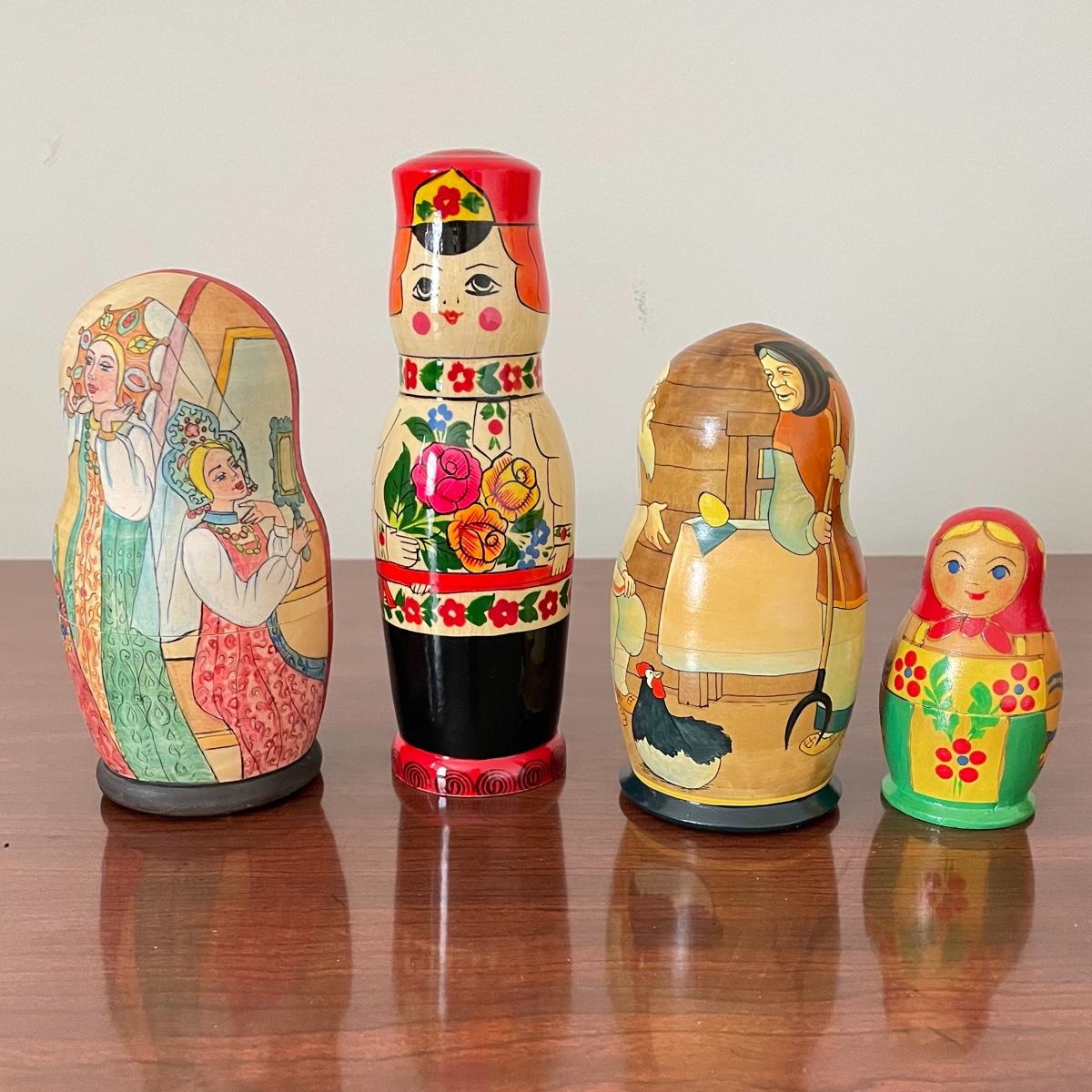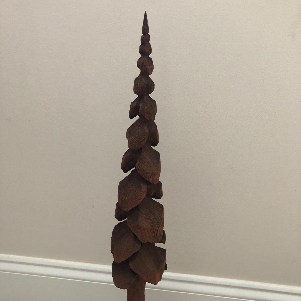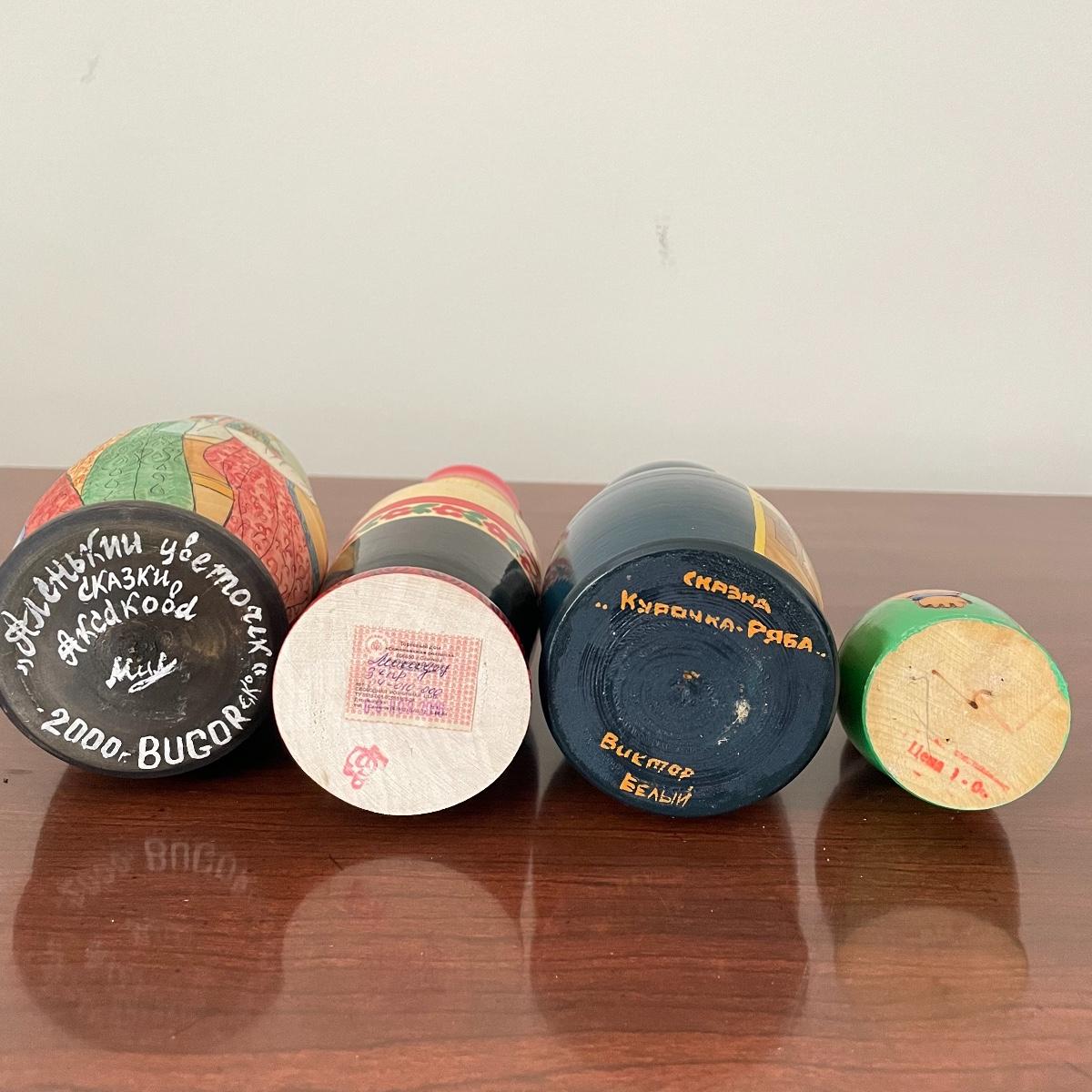 Lot includes four nesting dolls, three decorative wooden spoons and a carved tree from a California Redwood.