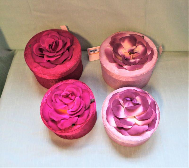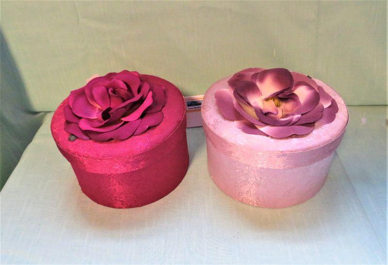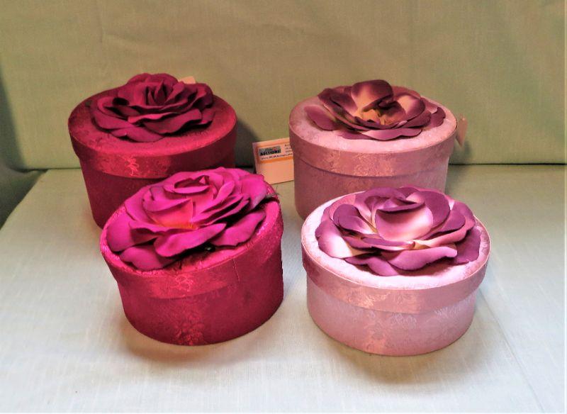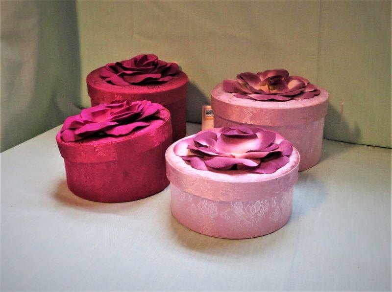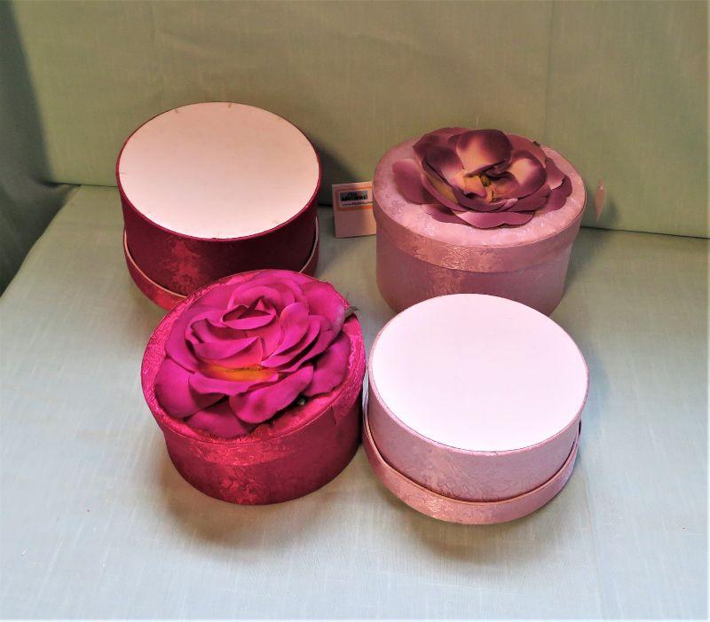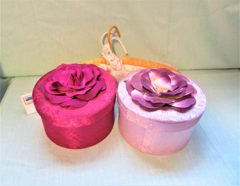 Nesting Fabric Boxes Red and Pink w/ Floral top & 2 padded Dress Hangers