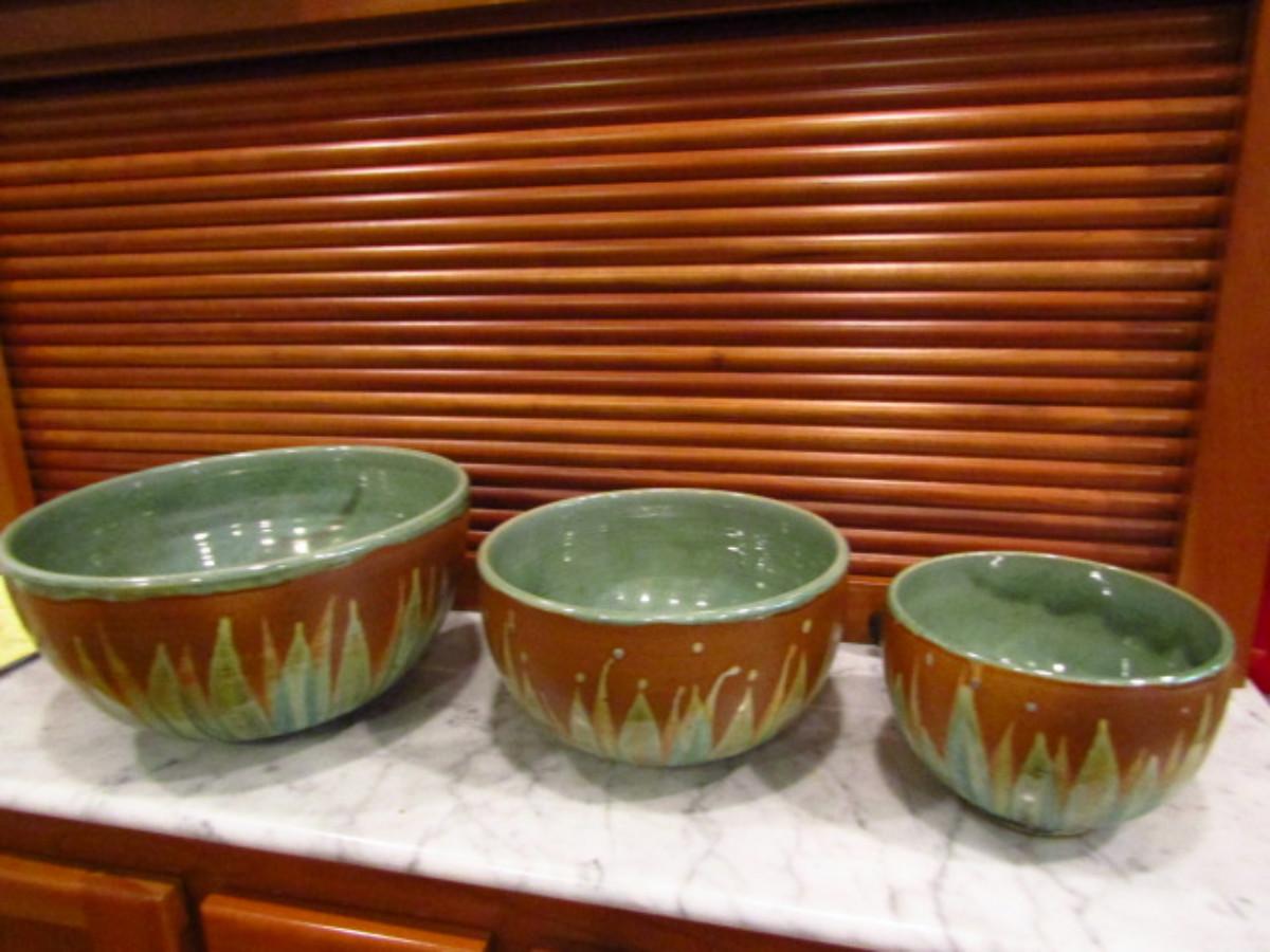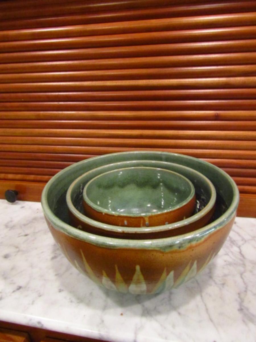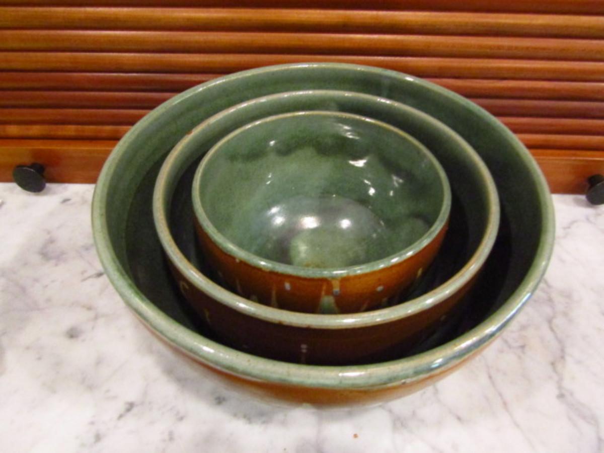 Nesting Glazed Pottery Bowls- Signed by Artist